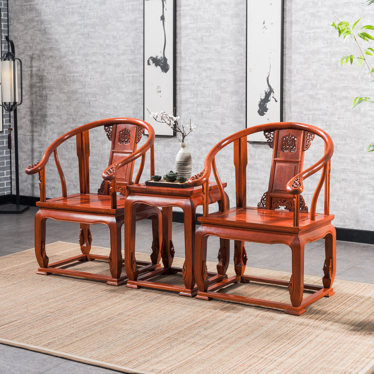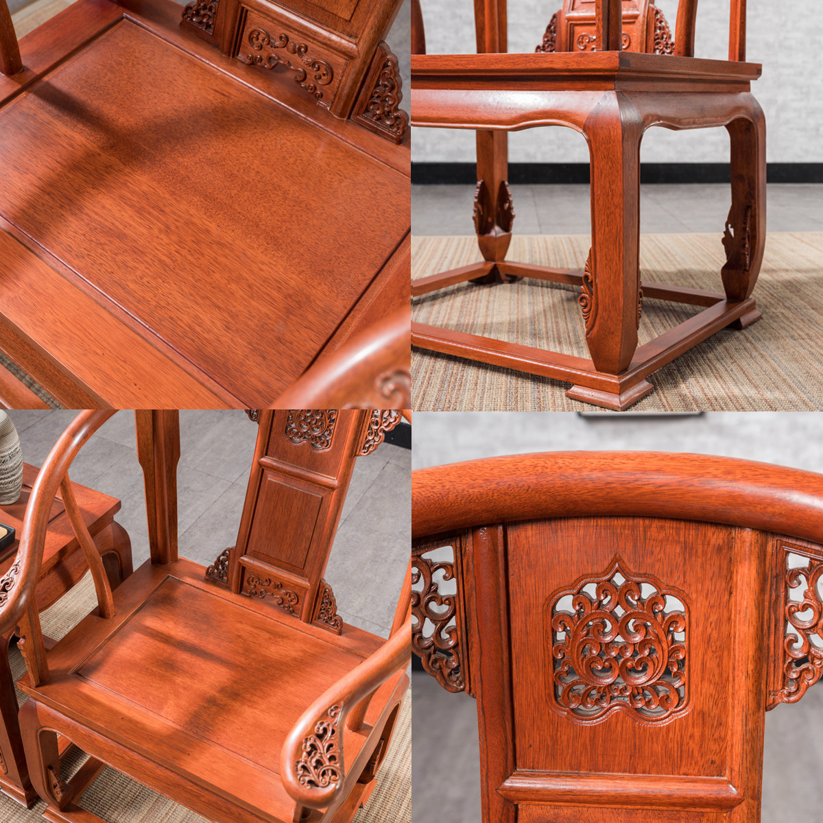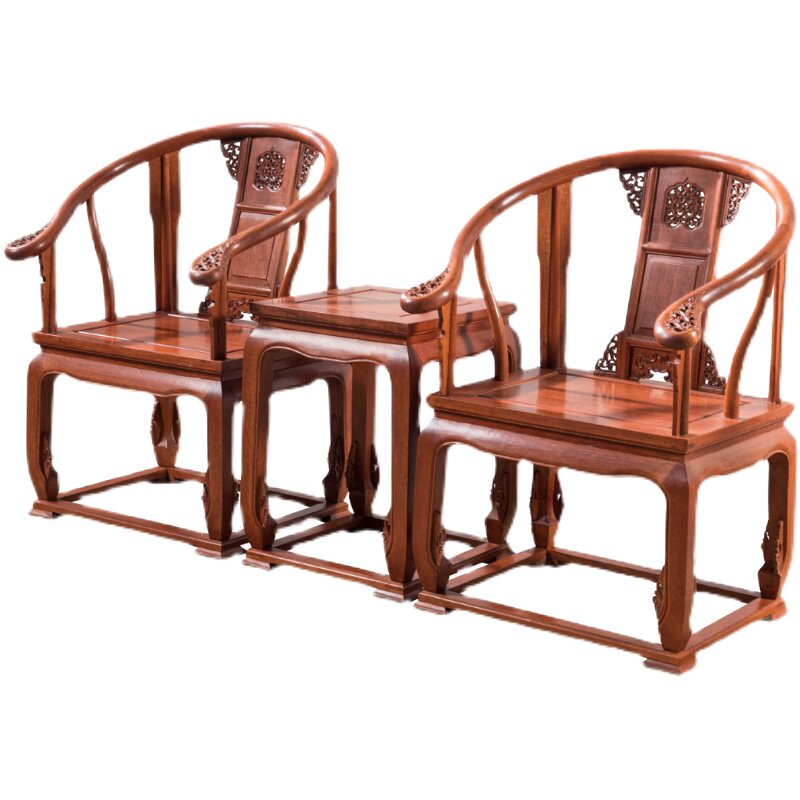 Home Commercial New Chinese Gold Flower Pear Circle Chair Imperial Palace Chair Three Sets Imitation Red Wood Furniture Innate Chair Official Hat Chair Real