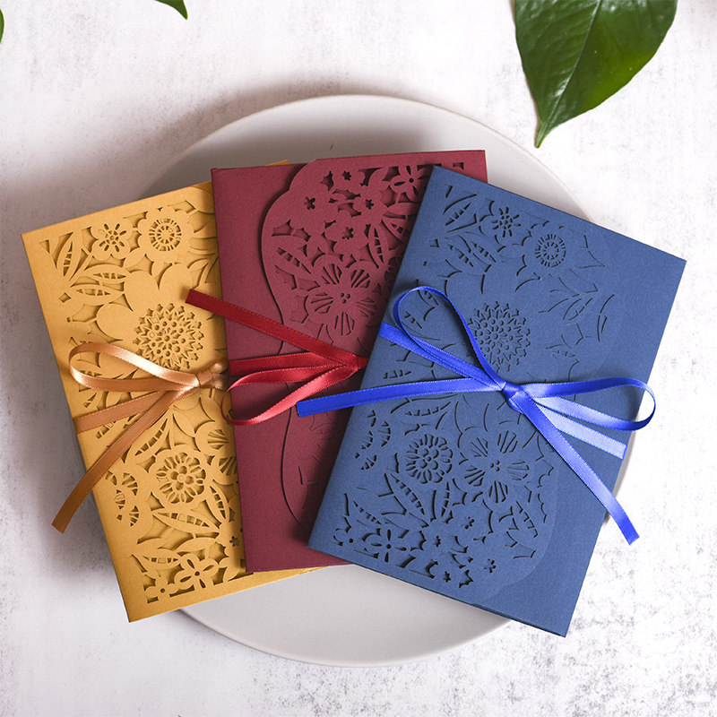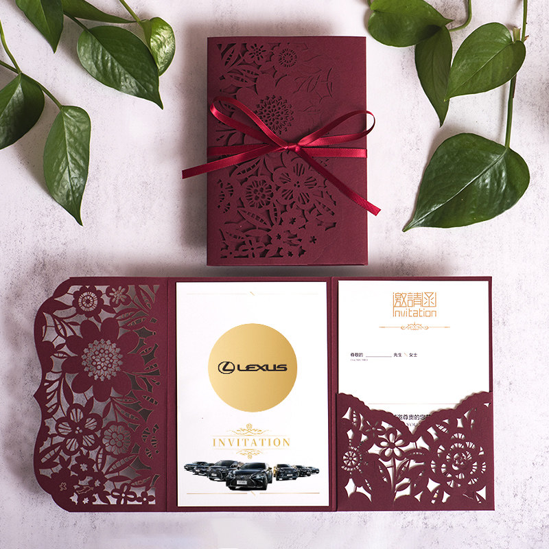 Invitation letter (customized) blue card with a minimum order of 50 invitations (customized) wine red card with a minimum order of 50 invitations (customized) red card with a minimum order of 50 invitations (customized) Mi Jinzhuguang