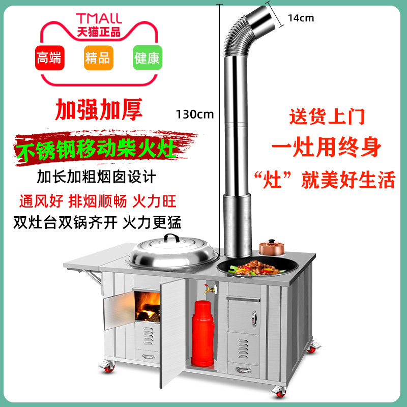 Firewood Oven Countryside Home Smoke-free 304 Stainless Steel Mobile Earth Stove Table Outdoor Water Tank Energy Saving Wood-burning Firewood Stove-Taobao