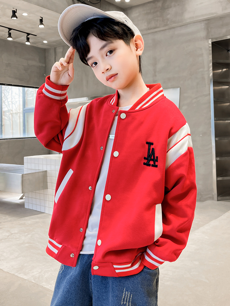 Boys spring and autumn baseball uniform jacket 2022 new western style boy autumn net red big boy fried street top