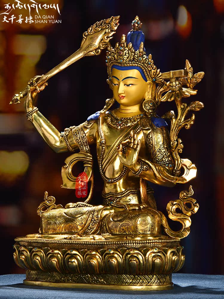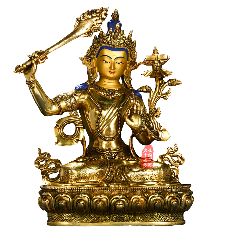 Big Thousand Good Edge Nepal Imports All handmade 1 ruler 34cm Wenjustshi BodhisattBodhisattva 10 inch bronze statue