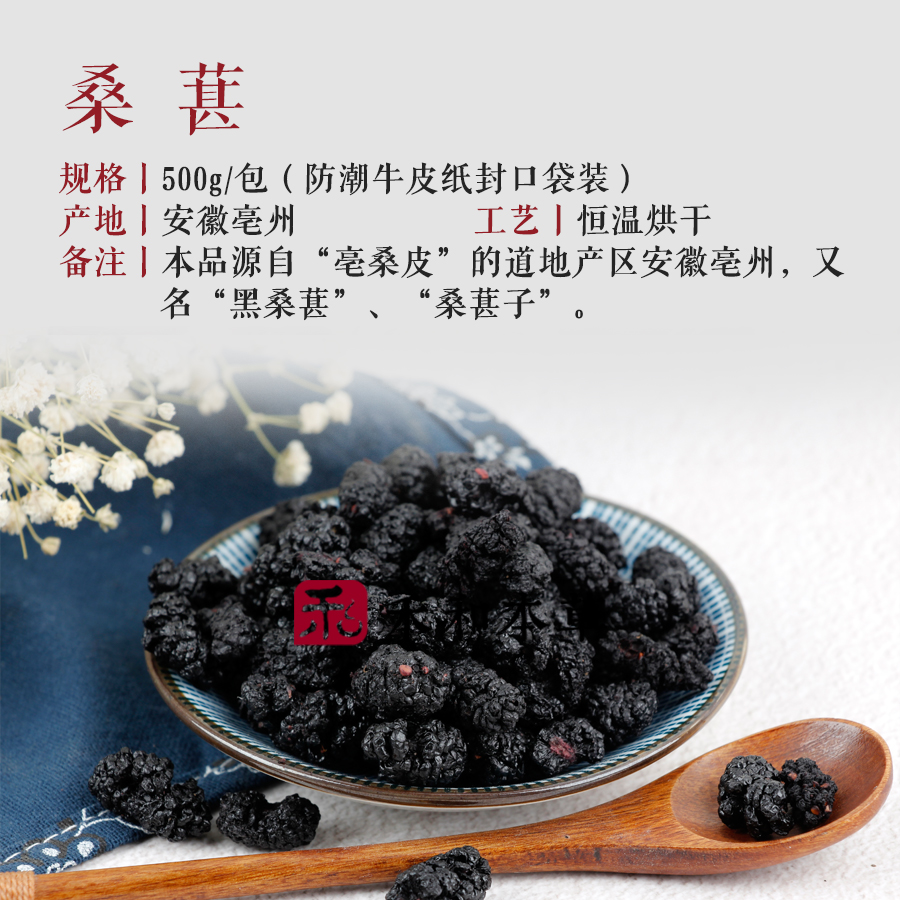 Mulberry seed 500g Chinese herbal medicine black mulberry bo mulberry fruit grains are full, not extracted, not gritty grass and herbal medicine