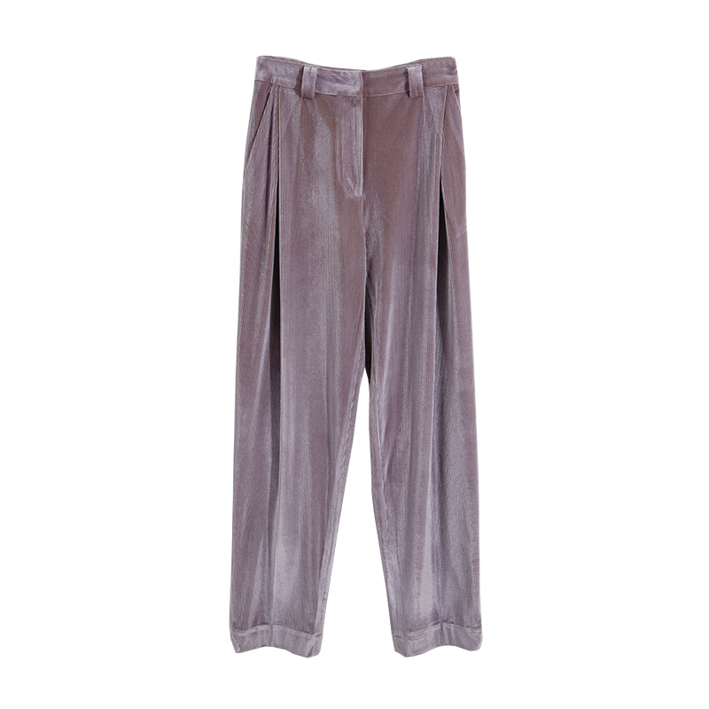 RAREST INDEPENDENT DESIGN Imported Jedi Glossy Bicolor Wire Suede Straight Drum Pants Loose Long Pants Fit Gold Necklace