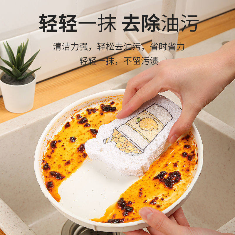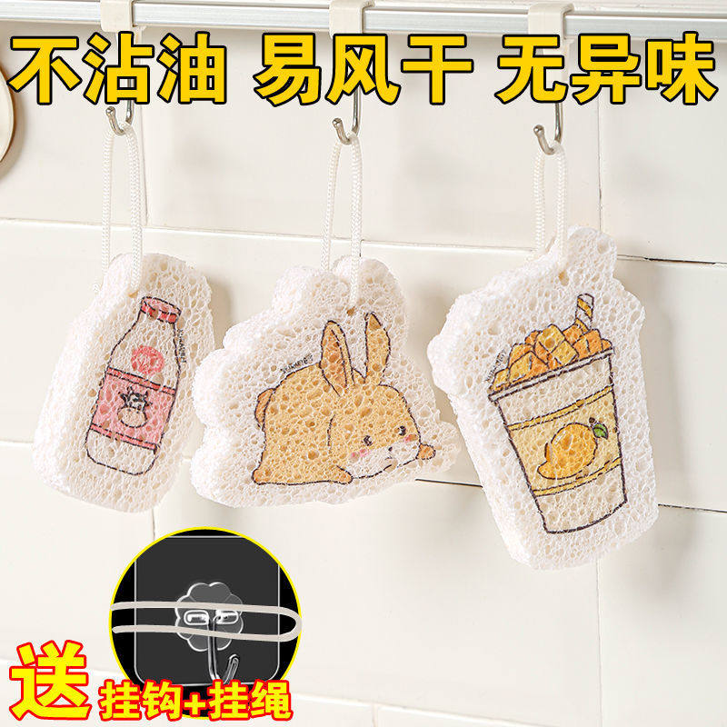 Wood pulp cotton dishcloth does not stick to oil kitchen absorbent brush first pot washing sponge wipe bowl artifact name scouring pad cleaning one