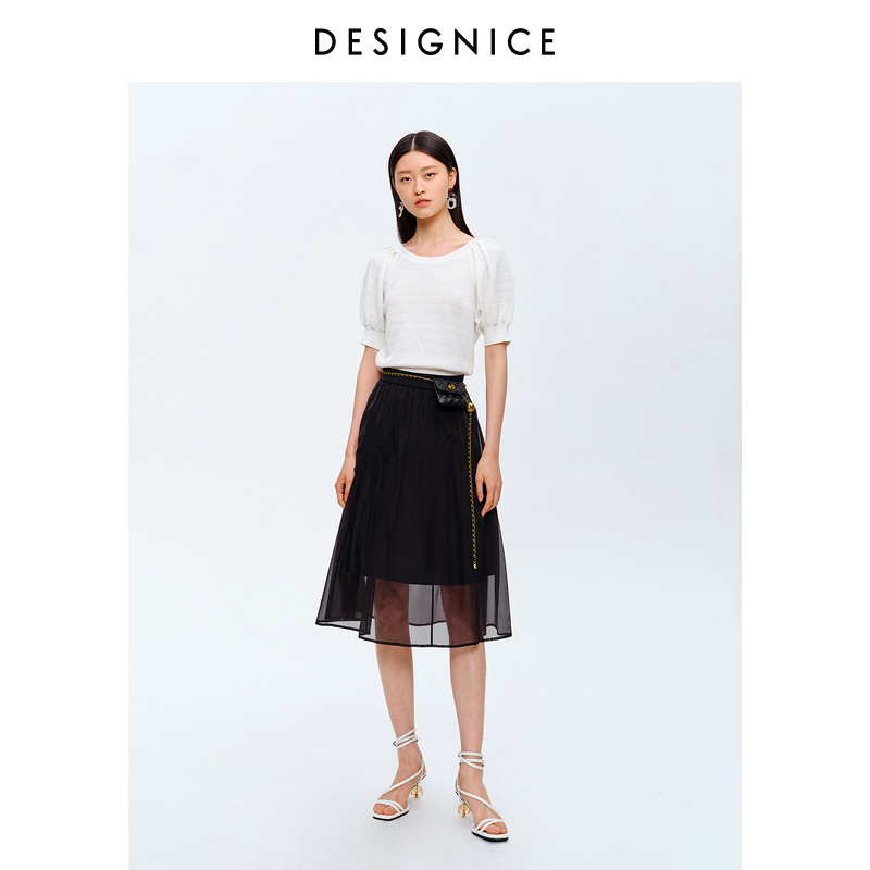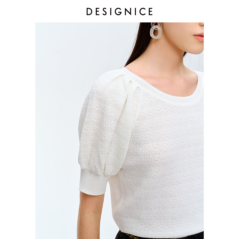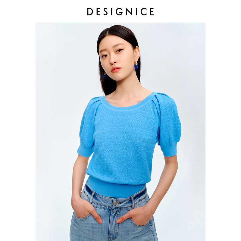 Disseyness 2022 Summer new fashion bright color Round Collar Short lantern Sleeves Thin-Knitted Sweatshirt Lady