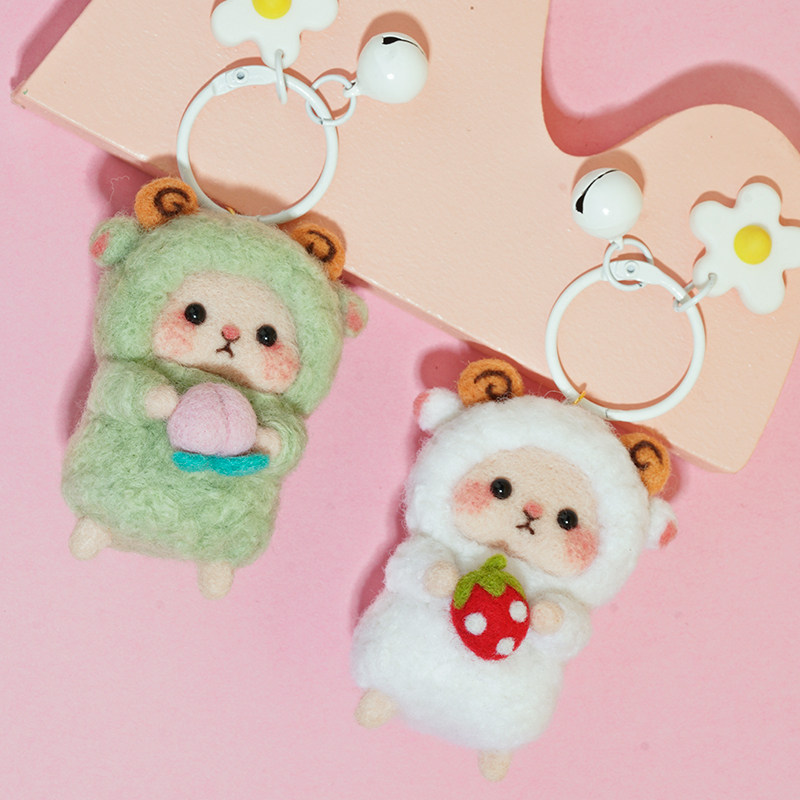 Fluffy sheep wool felt poking fun diy material package couple simple handmade doll cute creative pendant