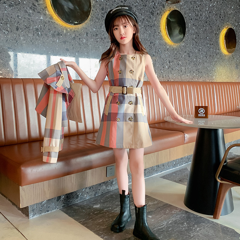 Girl Spring Dress Ocean Dress Suit 2022 New Chaoyang sends CUHK Scout Breeze Skirts Children Trendy Spring Summer