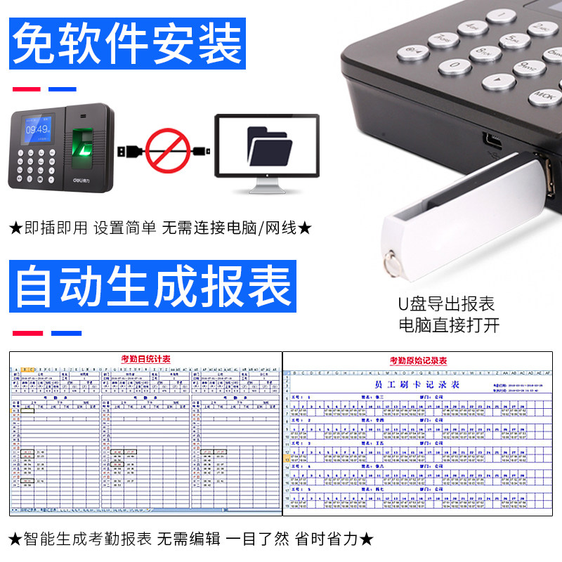 Upgrade section special bracket upgrade with 1200 pieces of fingerprint (no need for network automatic generation of reports) Upgrade of the section 16GU disc (large capacity attendance report one-key export)