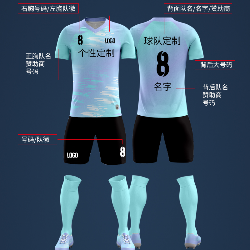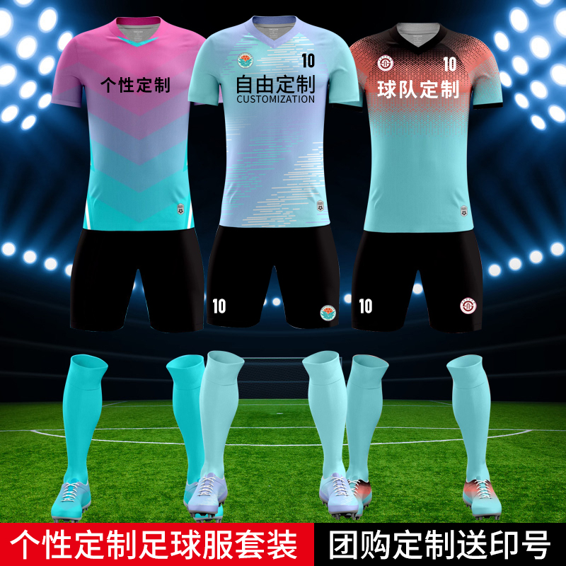 Soccer uniform suit men's adult children's football uniform custom team uniform short-sleeved jersey light board football uniform