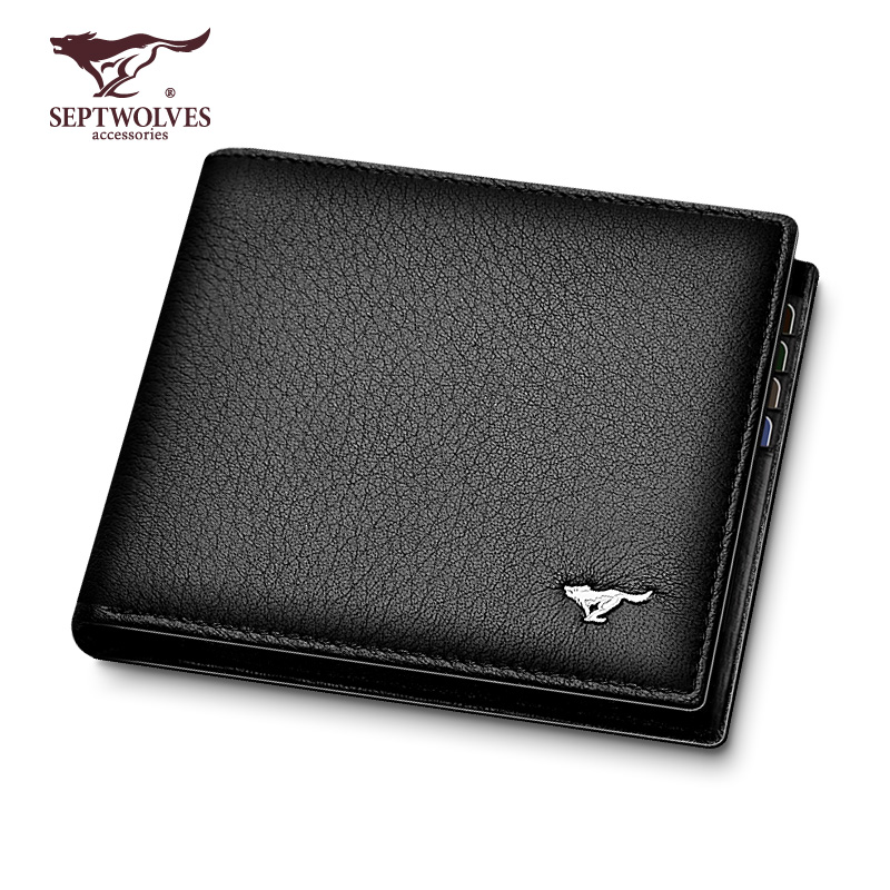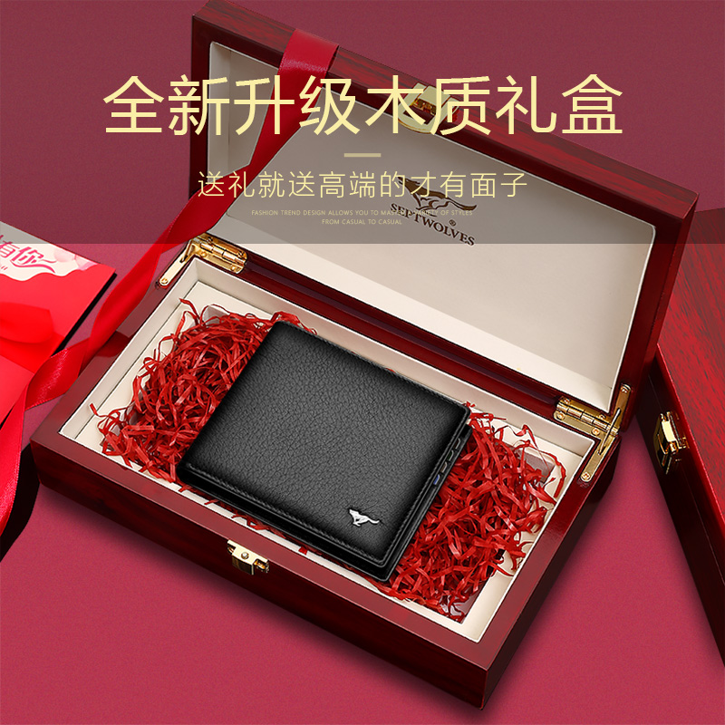 Seven Wolves Wallet Men Genuine Leather High-end Soft Deer Leather Male business courtesy short money clip Extravagant Bag Tide