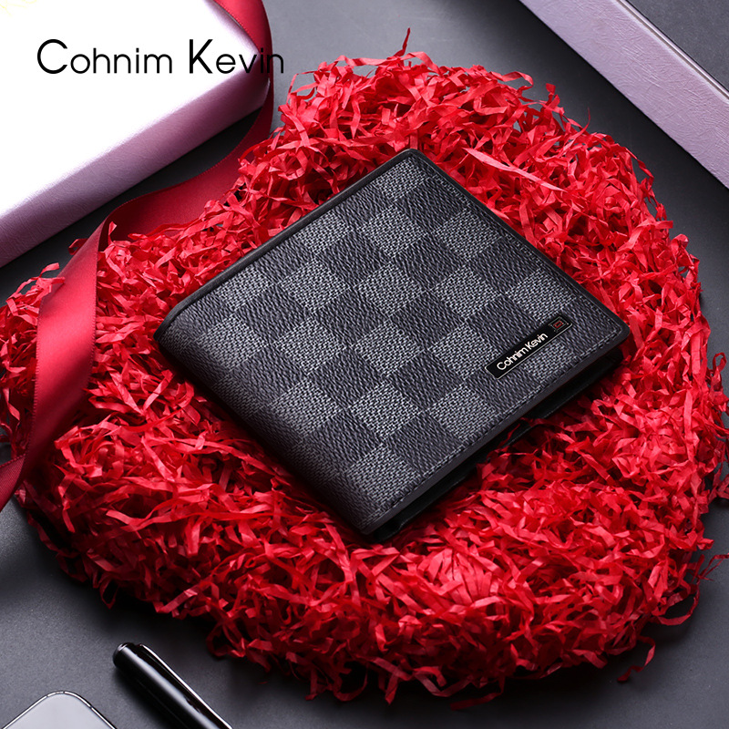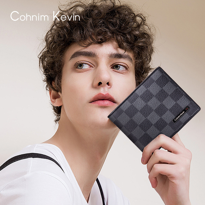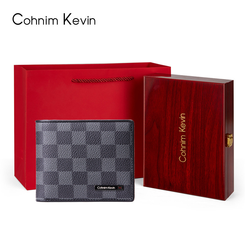 Cohnim Kevin2022 new men's wallet genuine leather money clip business grid short and high gear gift