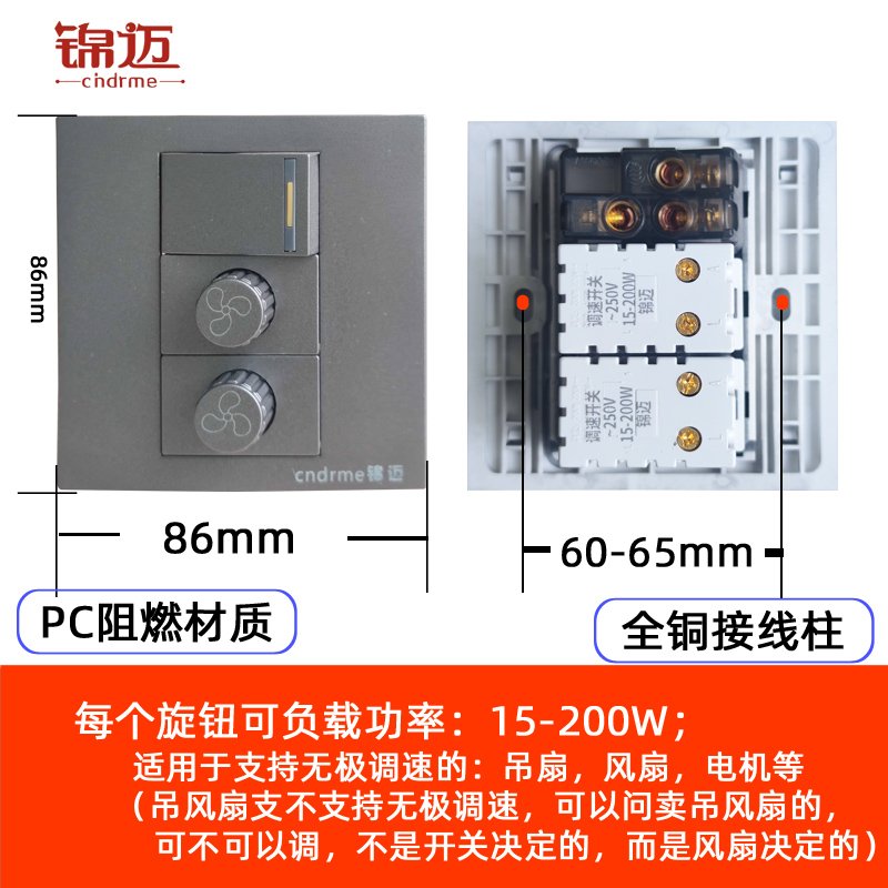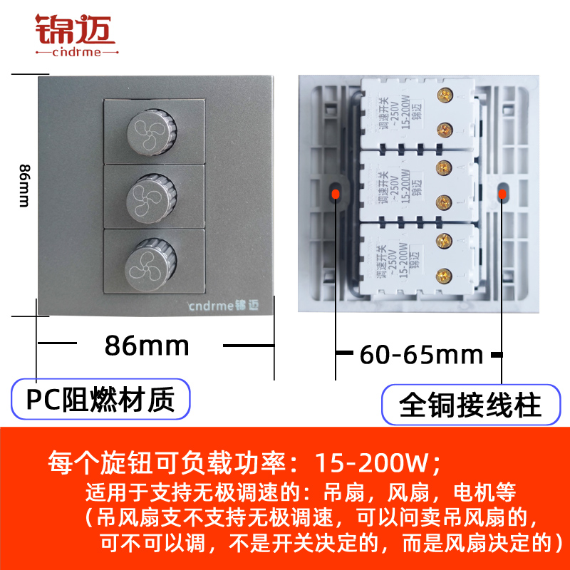 Chinmai Grey Ceiling Fan Speed Governor 200500 W 12 Three Throttle Switch Concealed more than 86 open Promise adjustment-Taobao
