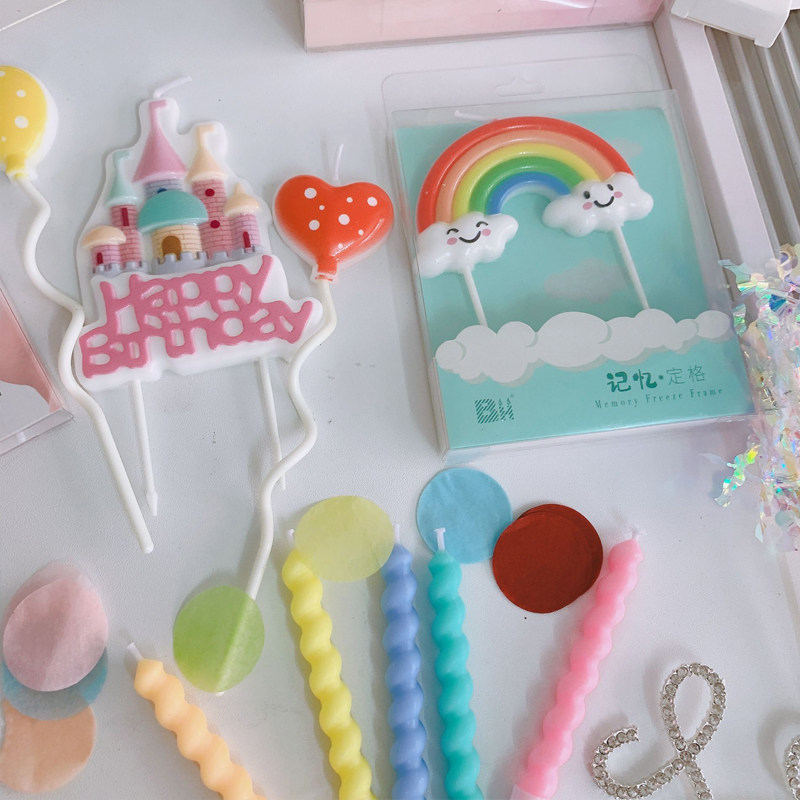 ins Korean smiley candle 18 year old princess party put a flag on cartoon bear rainbow child's birthday cake