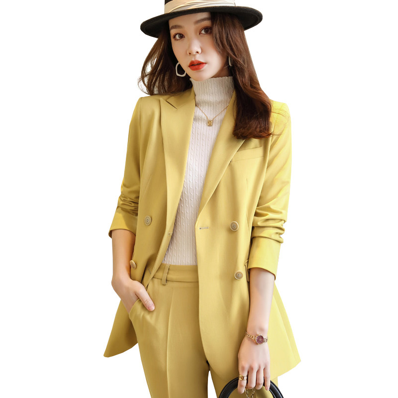 Yellow suit jacket woman 2021 new spring autumn free ironing advanced design Feel small crowdsourced fashion chic suit
