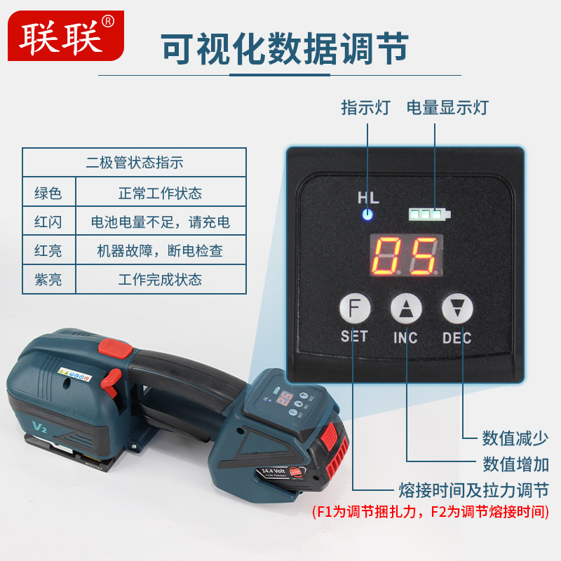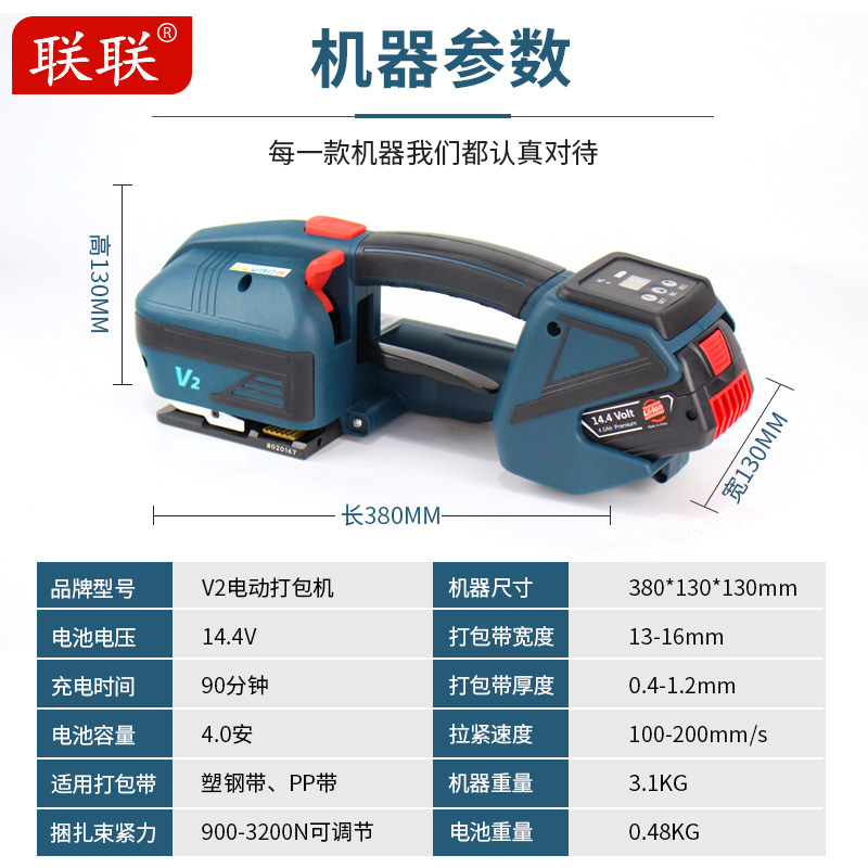 Lianlian LL-V2 Electric Hand Baler Buckleless Wood Strap Tightening Integrated Strapping Machine Hot Melt Plastic Steel Belt PP With Carton Brick Tensioner Rechargeable Baler Double Battery