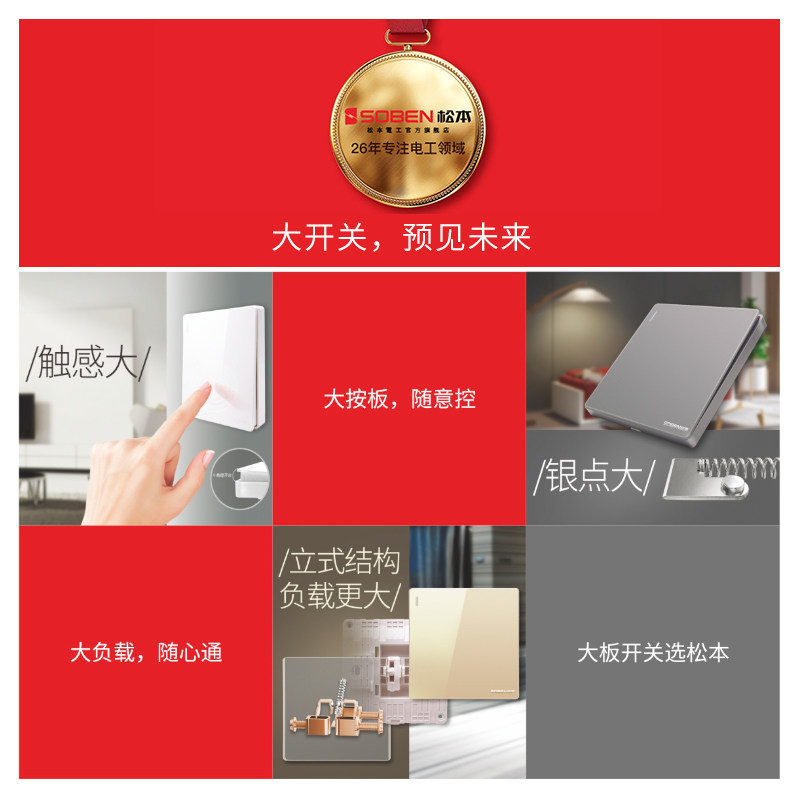 Two or three plugs (five holes) one open, two or three plugs, one big board switch, two big board switches, three big board switches, four big board switches, one double control switch, two double control switches, three double control switches, four double control switches control switch