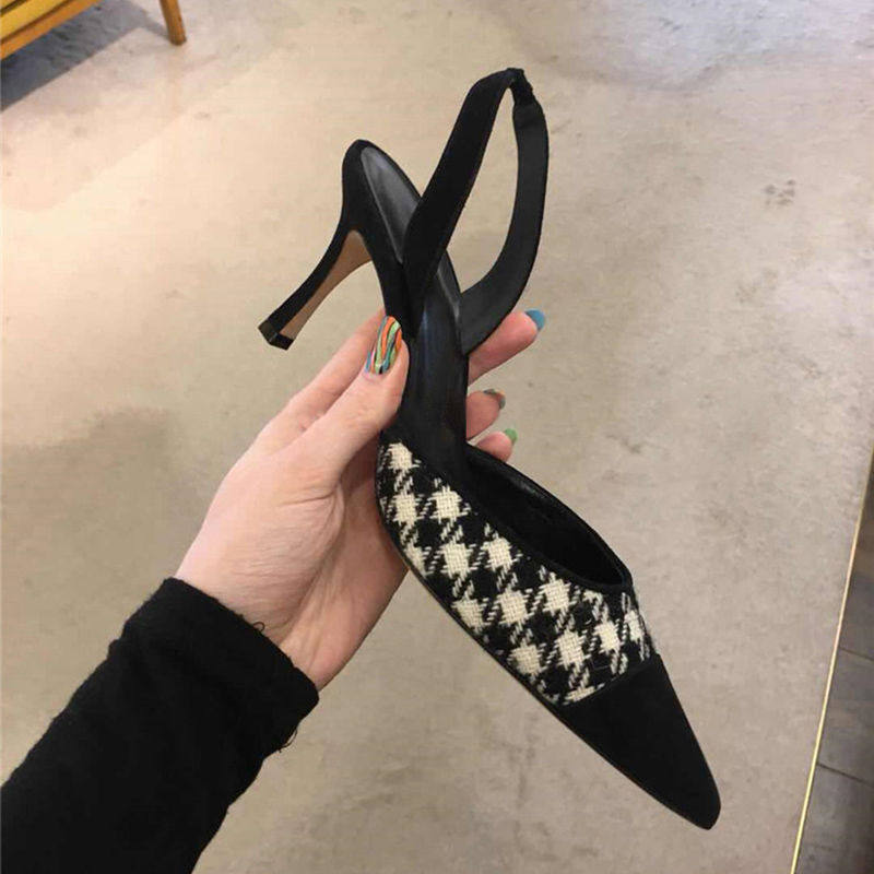 Face-style Retro Single Shoes 2020 Spring Summer New Baotou Sandals Women Fine With Elegant Pointed Heels Slippers