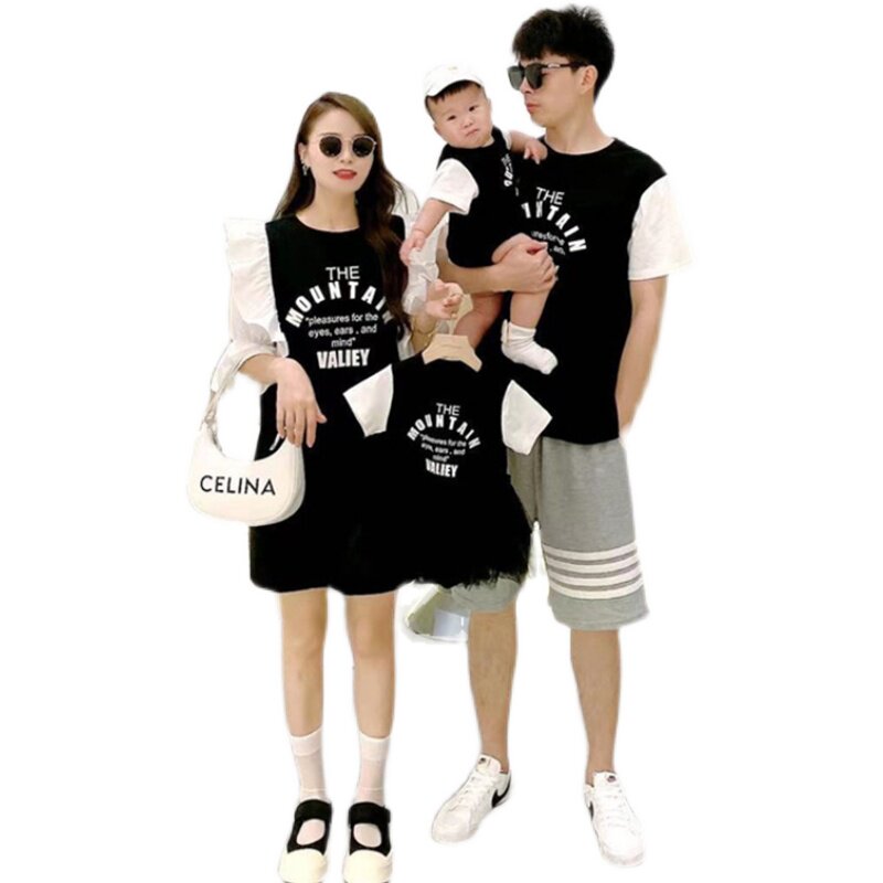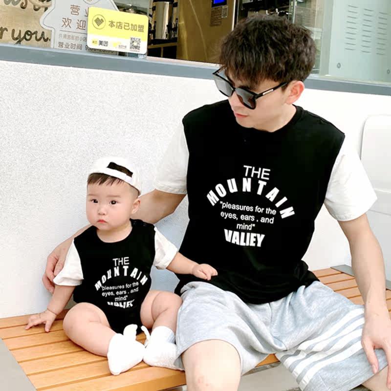 Parent-child clothes, a family of three Western style fashion baby rompers, children's summer short-sleeved T-shirts, net red mother-child mother-daughter clothes