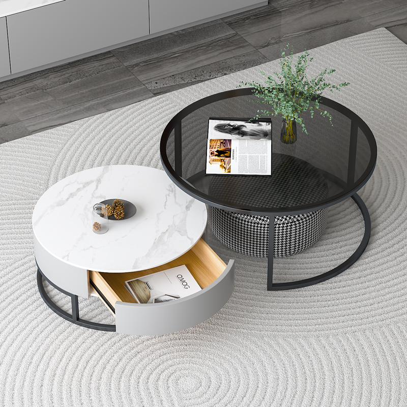 Slate round coffee table TV cabinet combination modern minimalist Italian light luxury glass tea table living room home small apartment