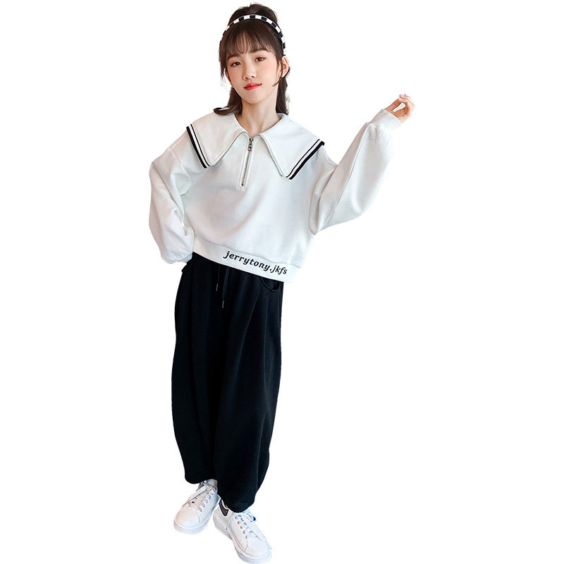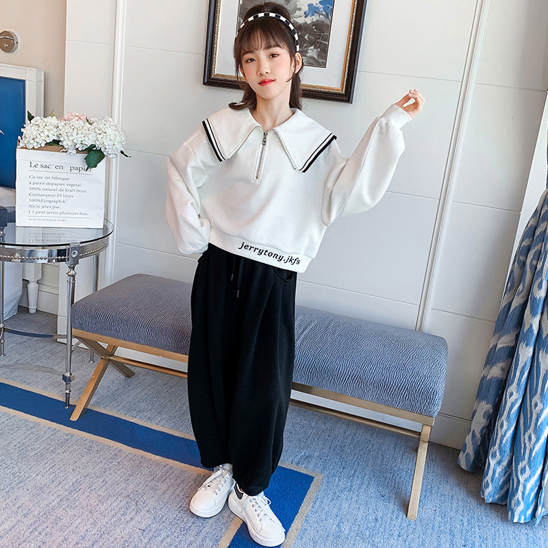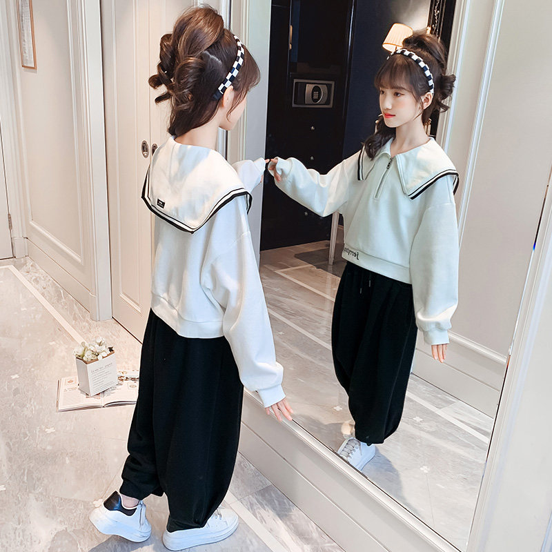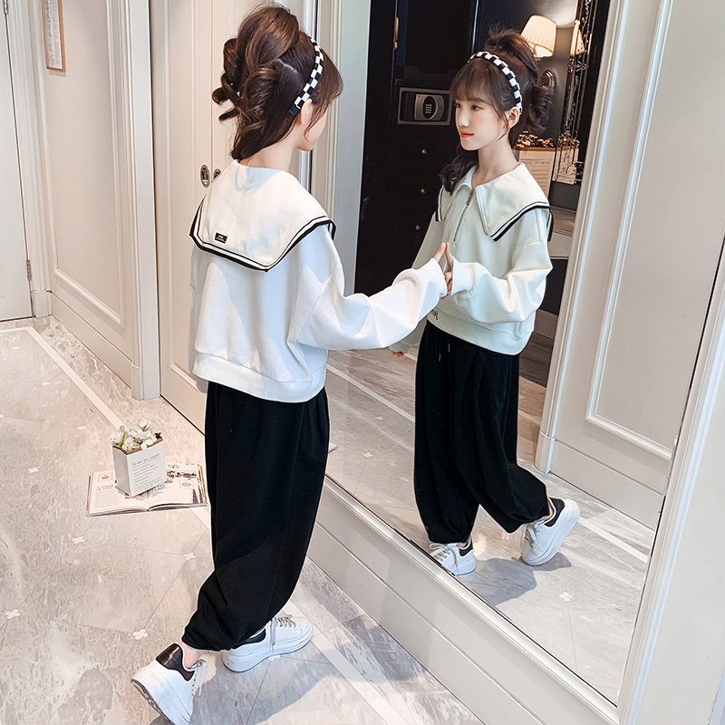 Girls' navy collar suit 2022 new spring clothes middle-aged children's net red Yangpai girls spring and autumn children's clothes two-piece suit
