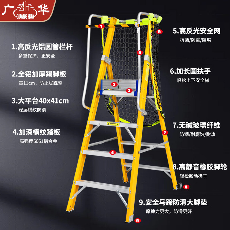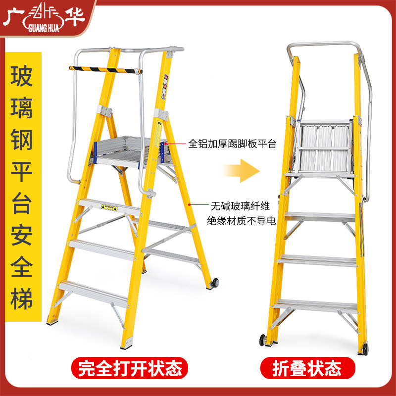 Electrician Special Platform Herringbone Ladder Insulation Engineering Ladder Folding Protective Armrests Fence With Wheels Safety Ladder