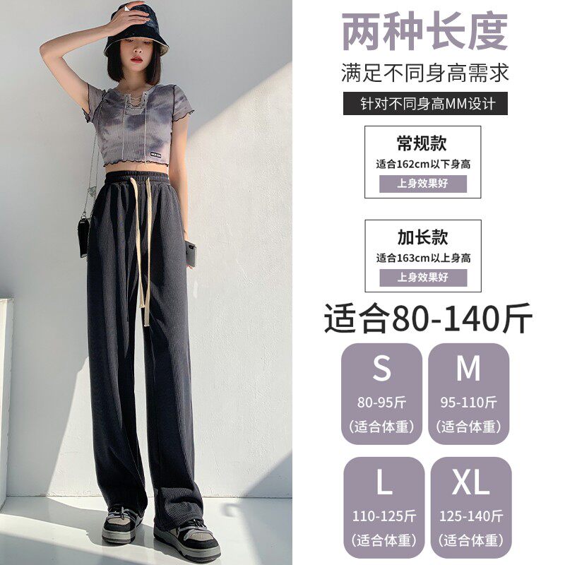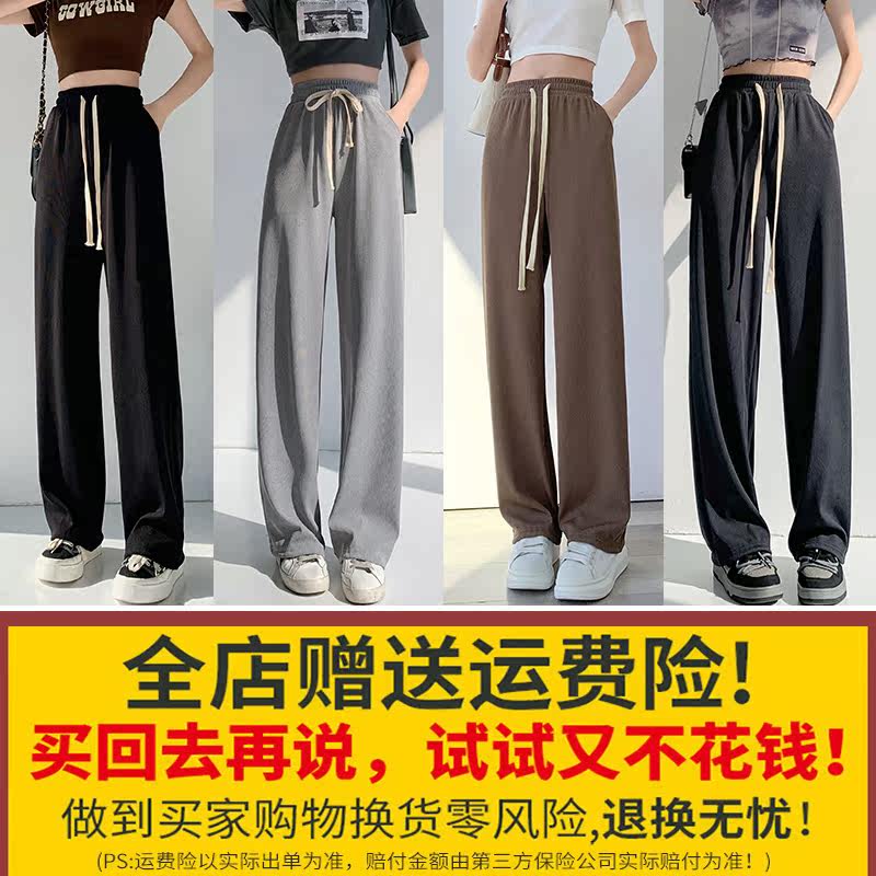 Drawstring ice silk wide-leg pants women's spring and summer thin section high-waisted loose drape all-match black slimming casual mopping pants