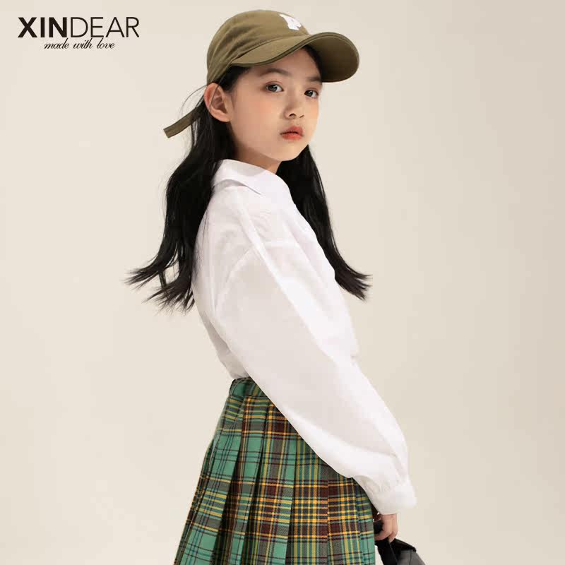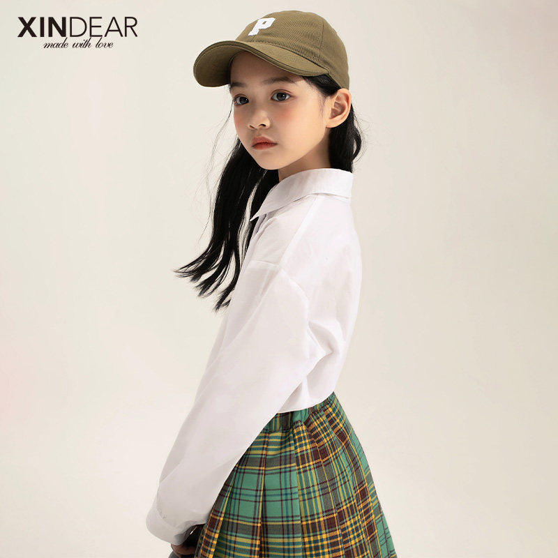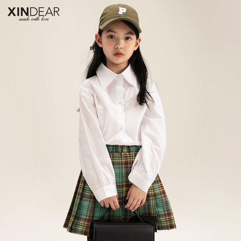 Girl Spring Dress New White Shirt 100 lap 2022 CUHK Tong Han version Cotton pure shirt Spring and autumn blouses