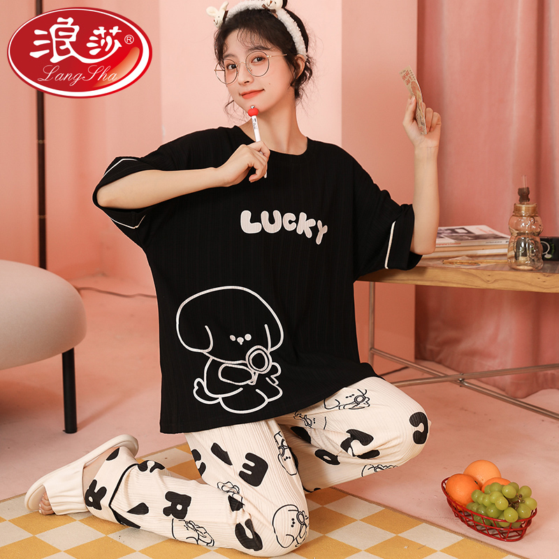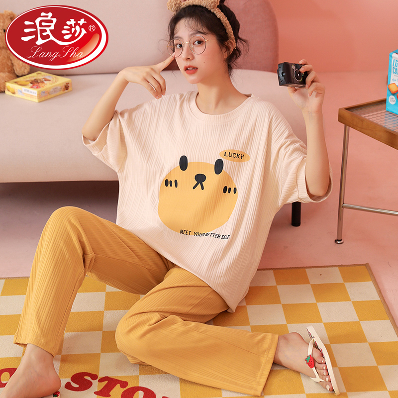 Surissa Short Sleeve Long Pants Pyjamas Woman Summer Thin pure cotton cute lady's home Residence Spring Autumn Season New 2022 2022
