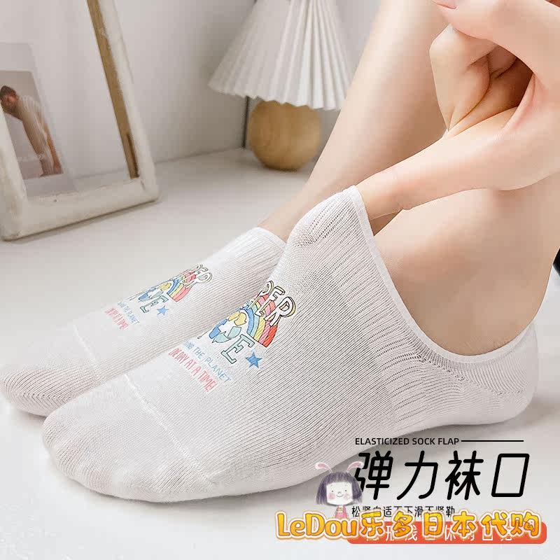 White Socks Children Short Socks Shallow Mouth Summer Thin pure cotton ins Chains anti-slip anti-fall with invisible boat socks Women's spring and autumn