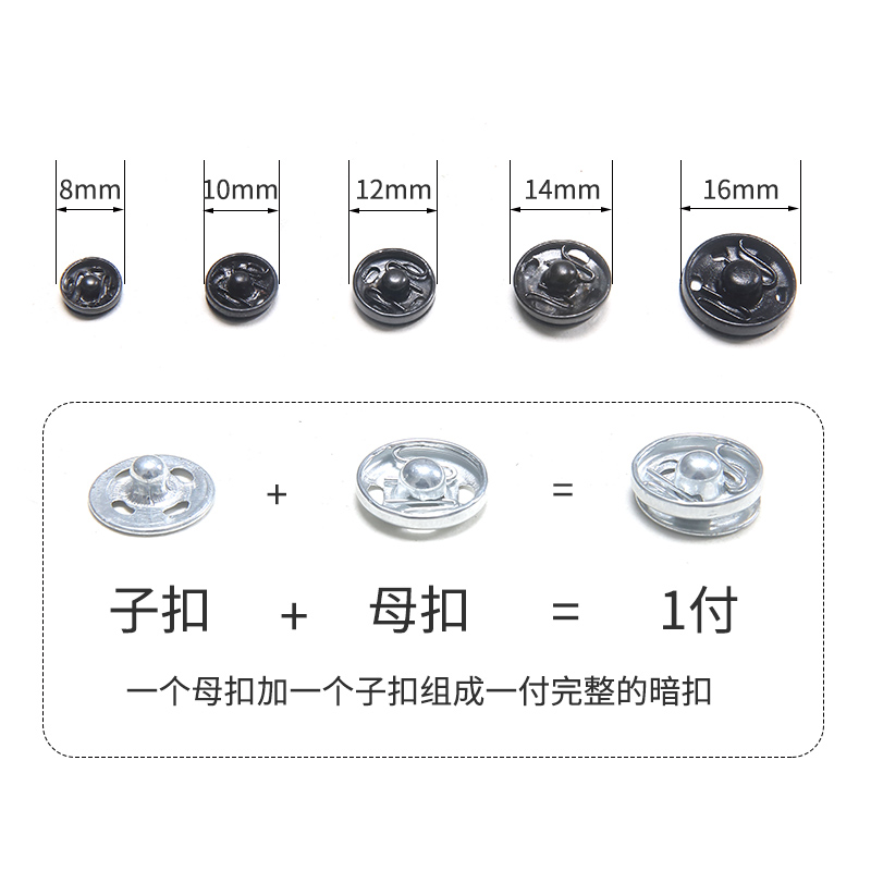 diy metal hidden button button anti-lighting invisible mother button baby children's clothing button button shirt flip button black