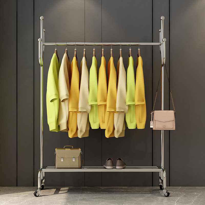 Stainless steel clothes hanger floor-to-ceiling bedroom single-rod clothes drying rod household dormitory room balcony clothes drying rack mobile pulley