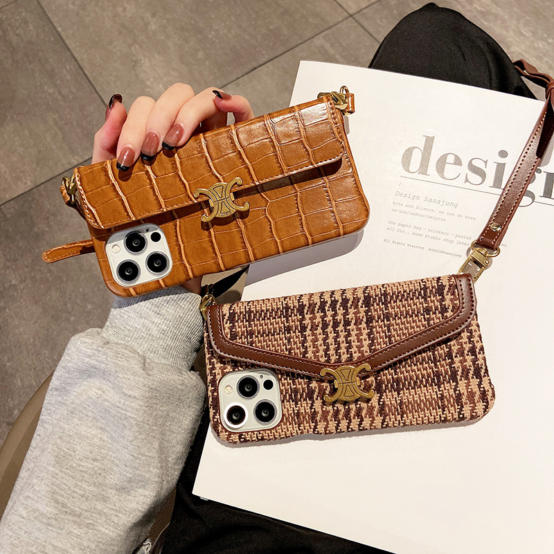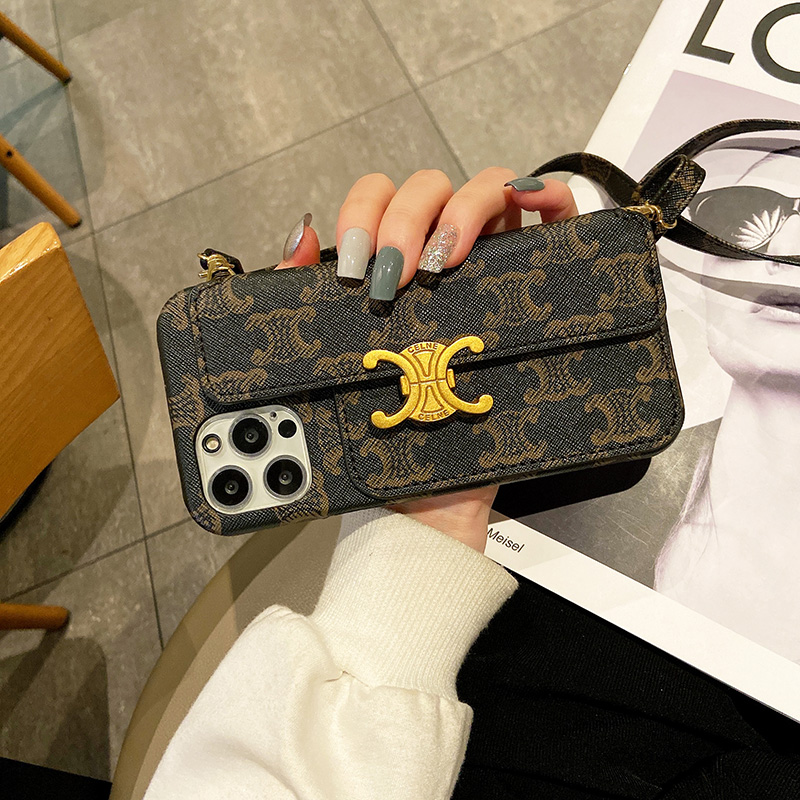 Tide brand iphone14 mobile phone protective shell diagonal female 12pro Apple 13promax belt rope suitable for high-end backpack