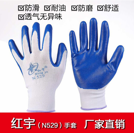 Hongyu N539 N529 Nitrile Latex Dip Plastic Xingyu Protective Gloves Non-slip Oil Resistant Hongyu Labor Insurance Gloves