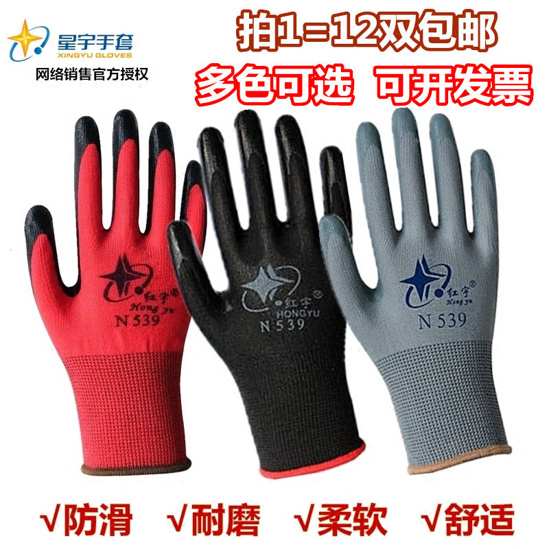 (12 pairs) Hongyu N539 red yarn vinyl, breathable and wear-resistant