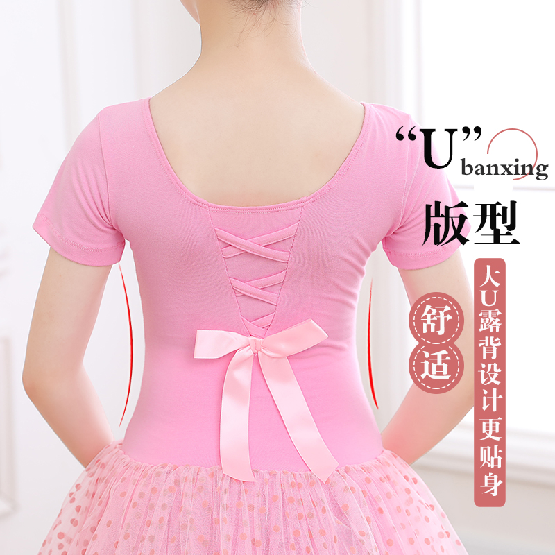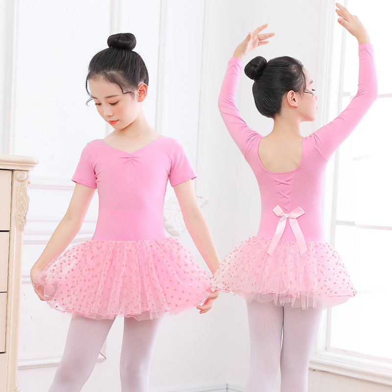 Children's dance clothes long and short sleeve pink exercise clothes girls ballet skirt children's Chinese dance one-piece pure cotton open file