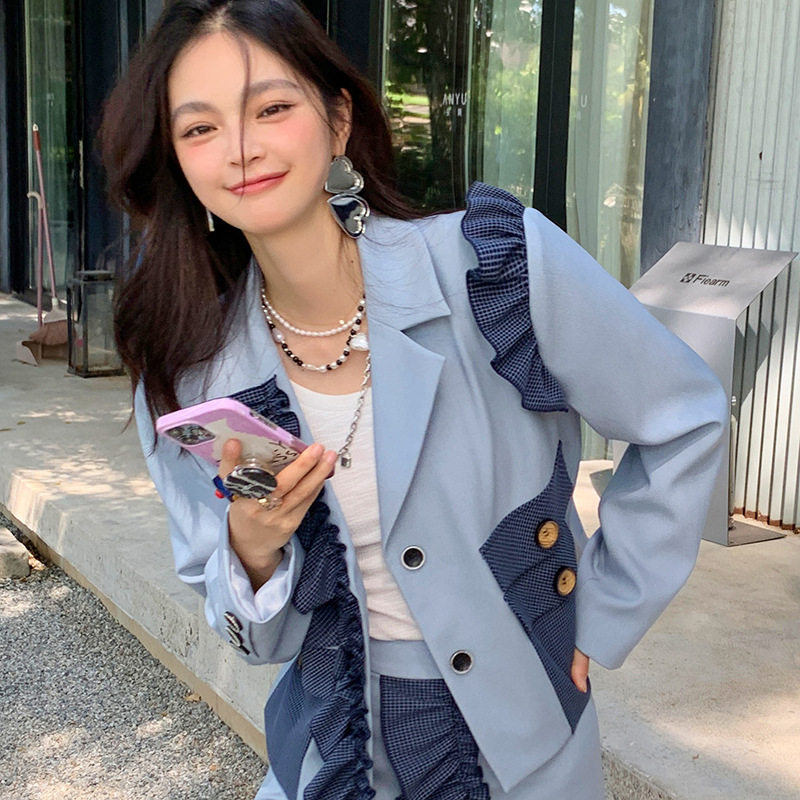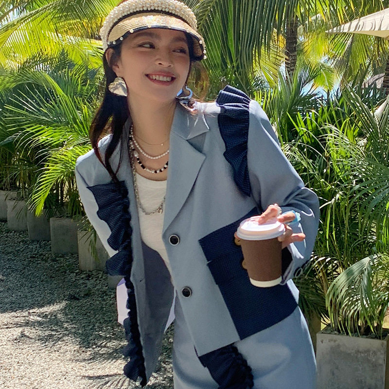 Temperament commuter fashion trend all-match white niche design sense spring new small suit jacket women
