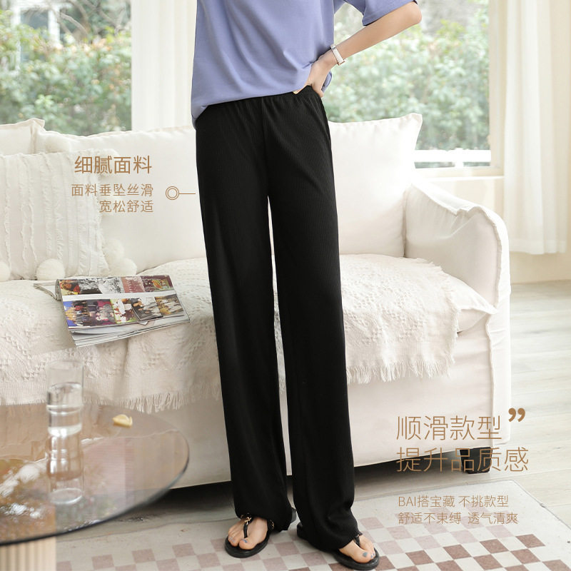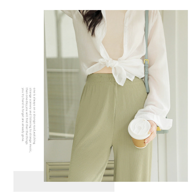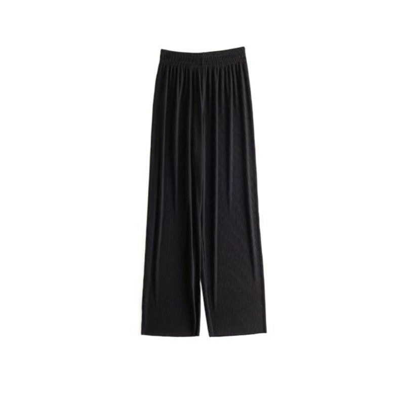 KPUWARM shell wood Miyake silky wide-leg pants, high waist, drape, high waist, thin straight pants
