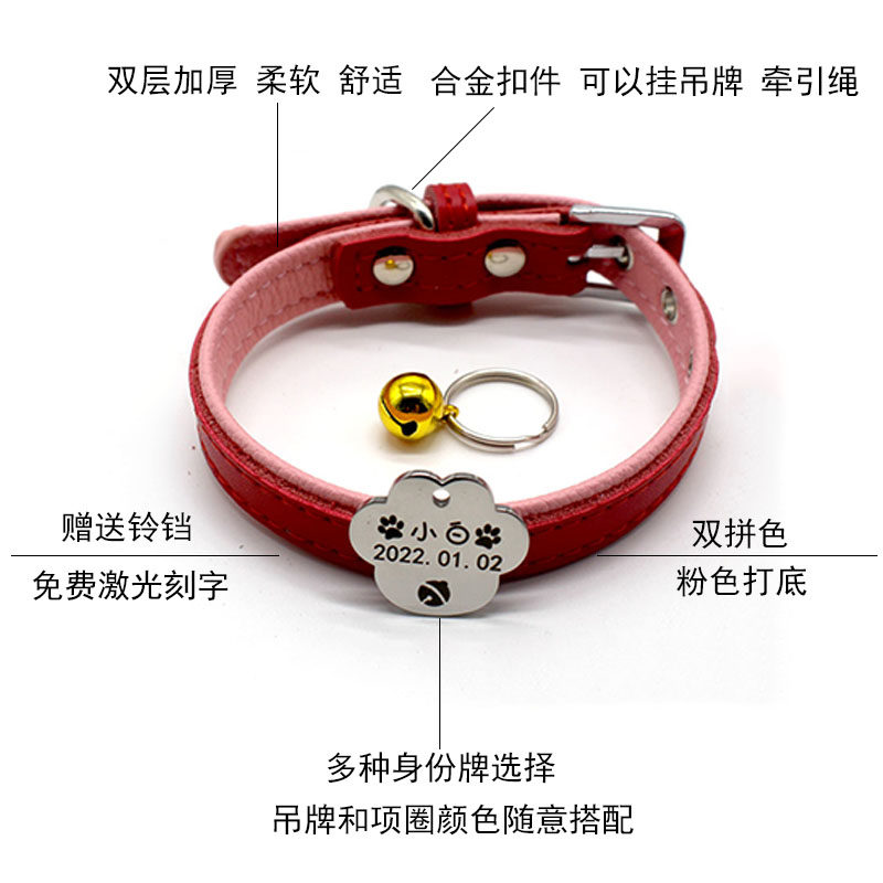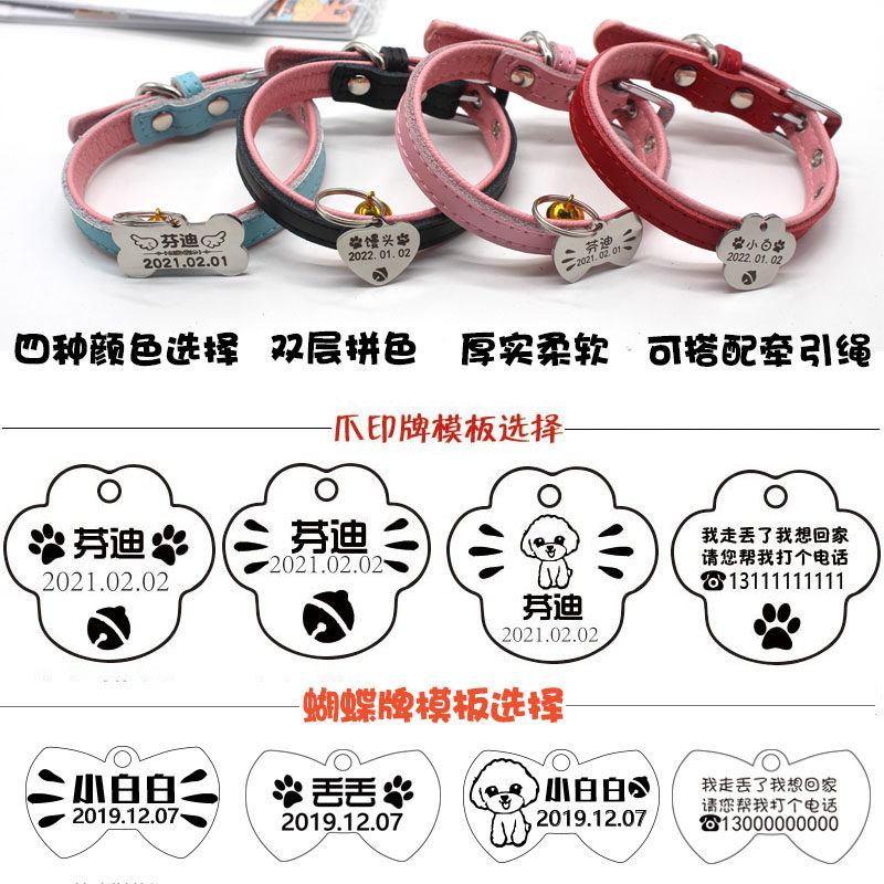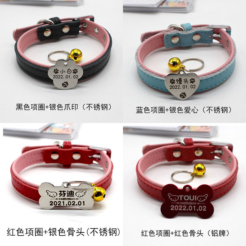 Pink collar Bowknot (stainless steel) black collar Paw print card (stainless steel) red collar bone card (stainless steel) blue collar love card (stainless steel) red collar red bone card (aluminum card)