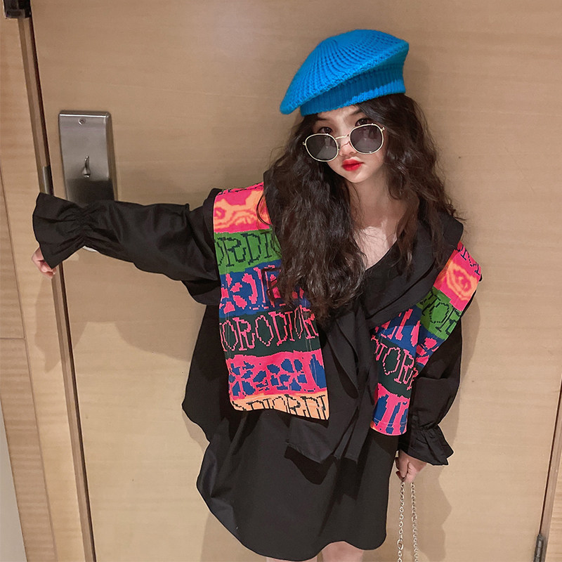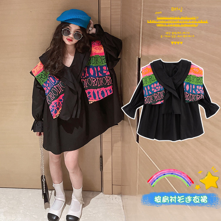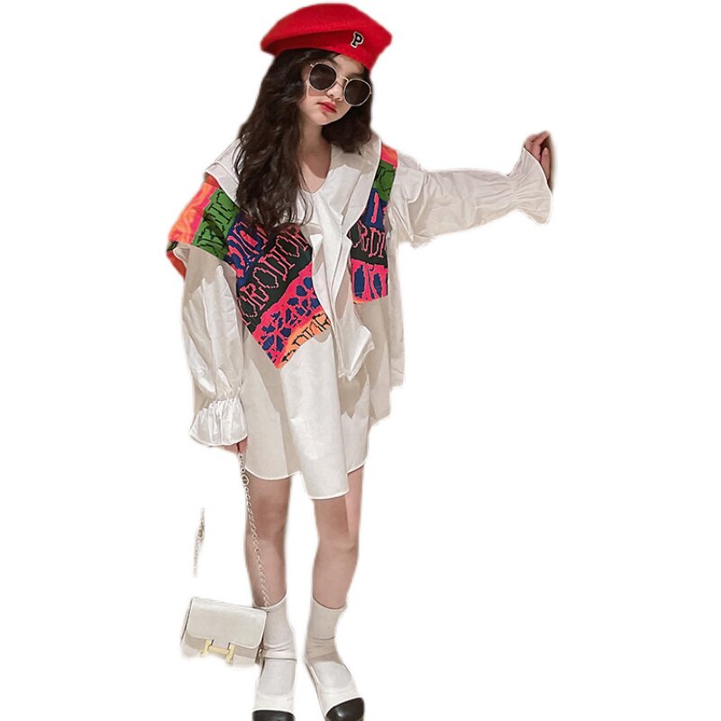 Girl's new spring 2022 Children design Han version Leisure CUHK Scout Nets Red Fashion Shirt Ocean Wave
