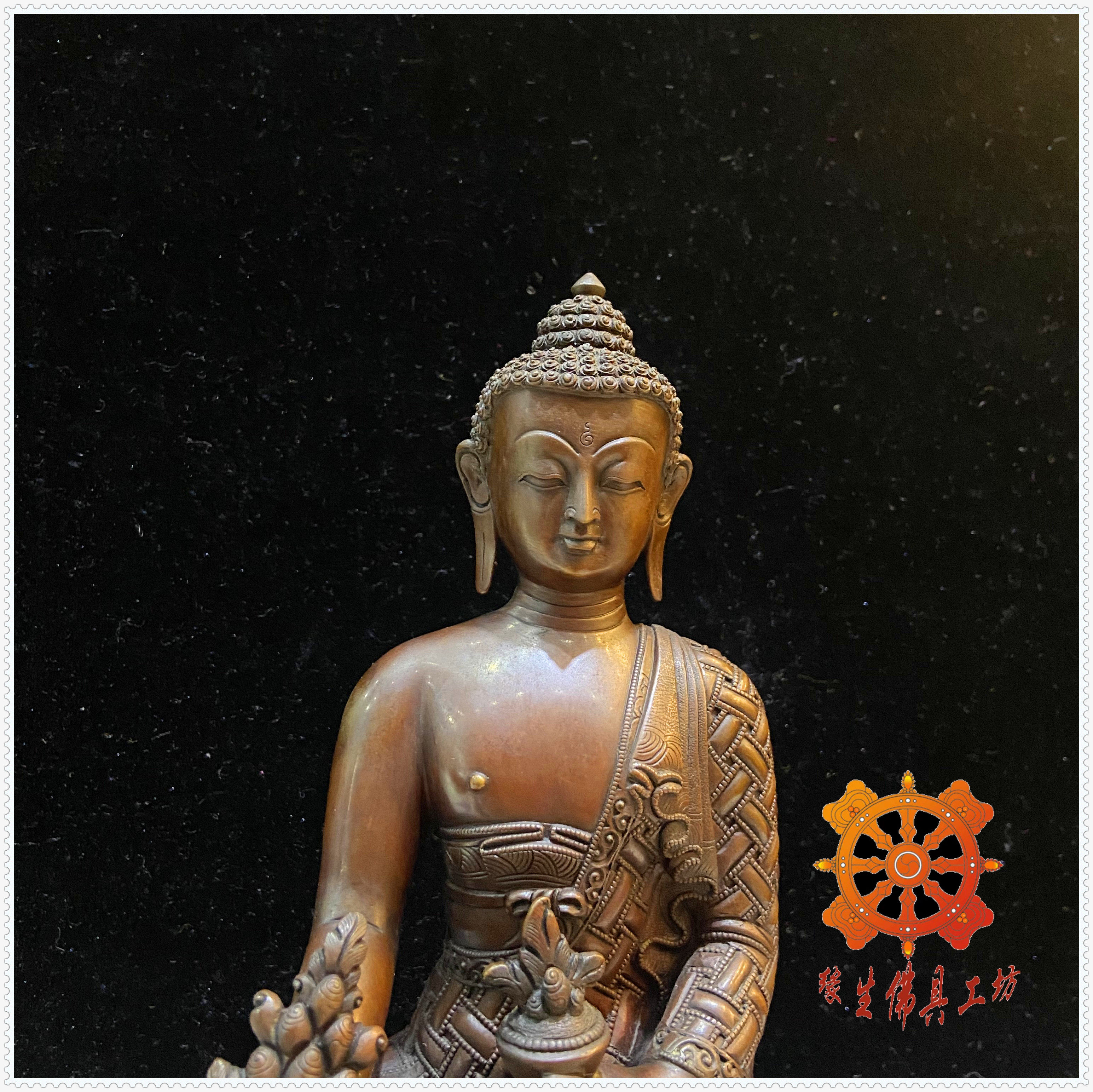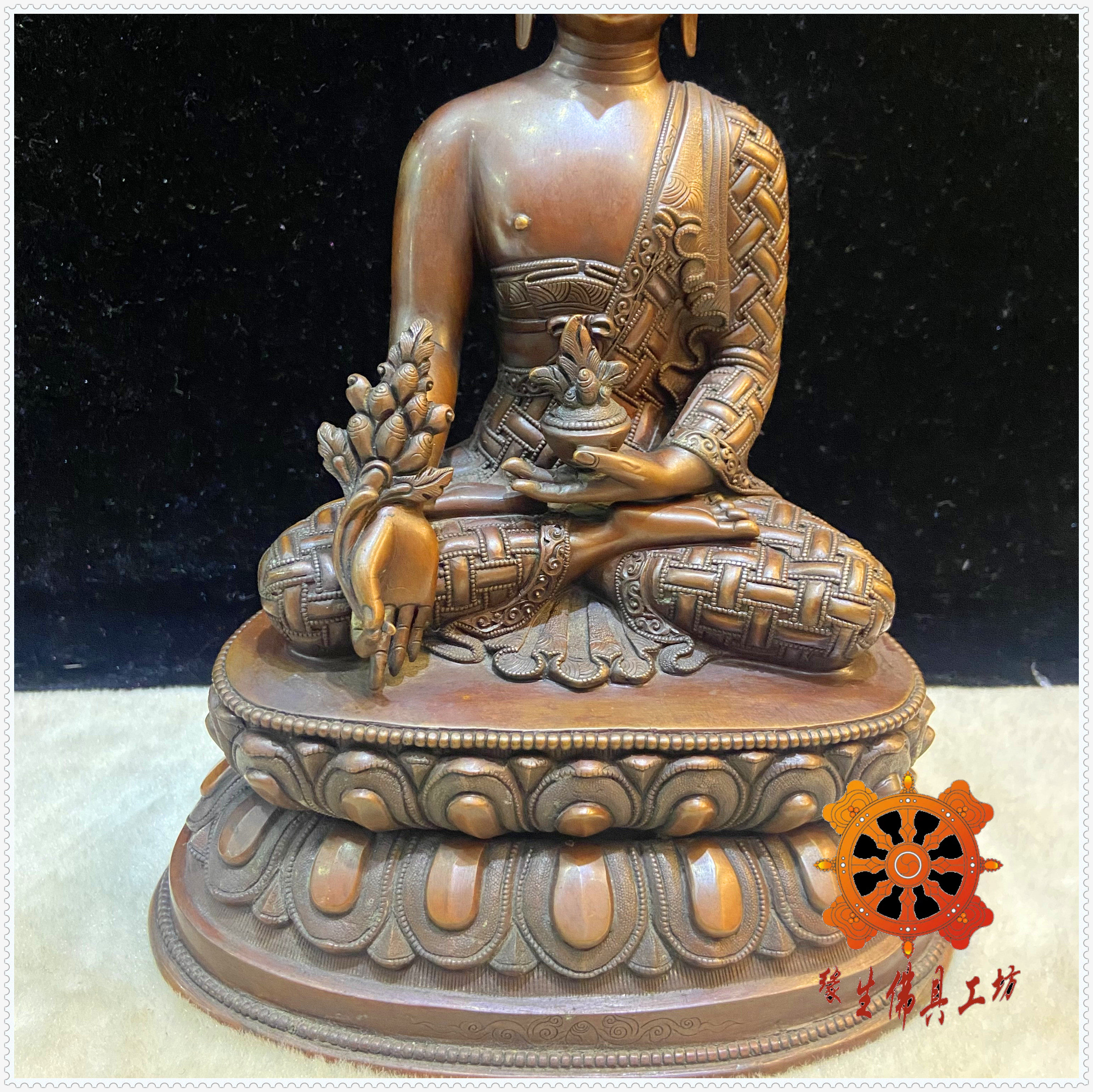 Edge Life Buddha Nepalese Seiko Red Bronze Sculpture Florist Buddhist Master Buddha Shuanglian Terri 7 inch Myong Pharmacist Buddha Statue 23cm