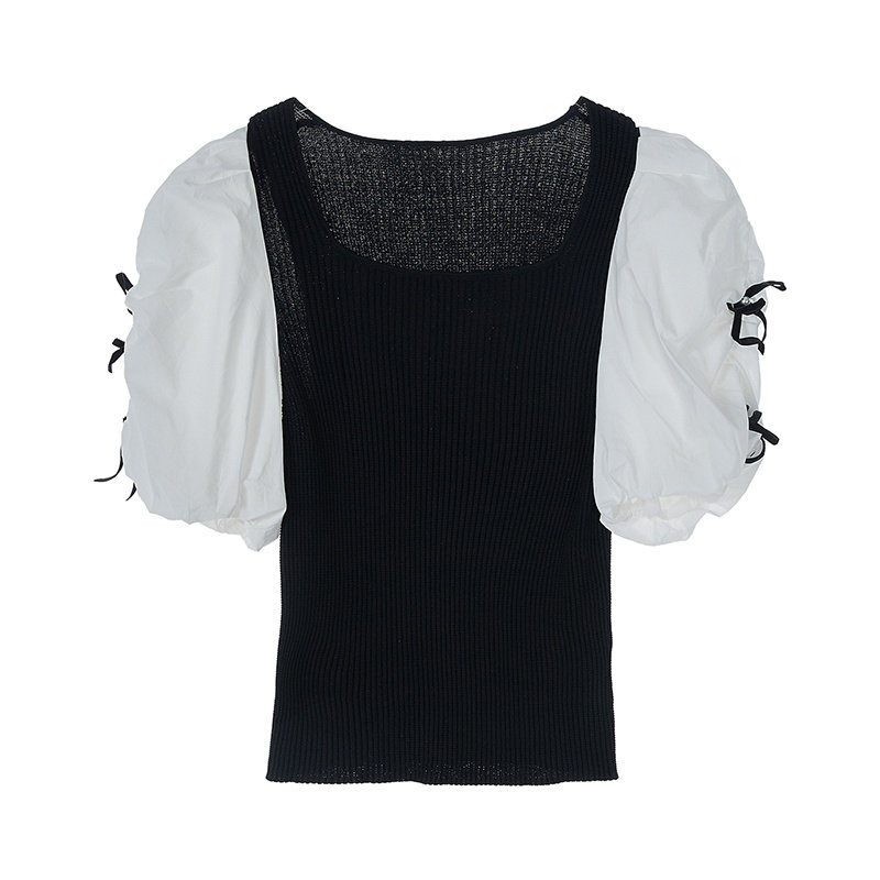 Jamor short sleeve blouses woman 2022 spring and summer new collision color splicing short blouses blouses blouse sweatshirt sweetness