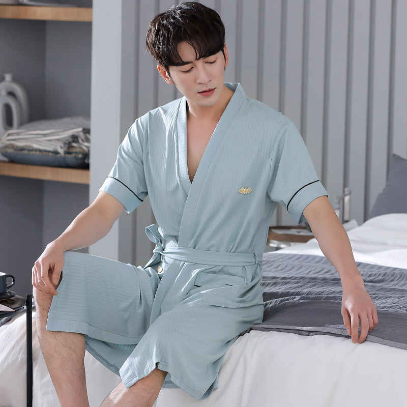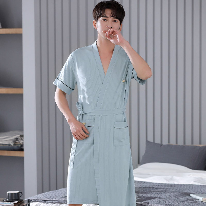 Cat-man's dressing robe men summer Modall cotton short sleeve skin day teen and spring and summer bathrobe men's pajamas