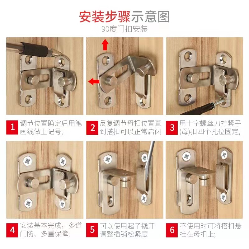 Stainless steel punch-free lock buckle multi-purpose door bolt door buckle sliding door latch buckle buckle 90 degree installation cabinet door lock - Taobao