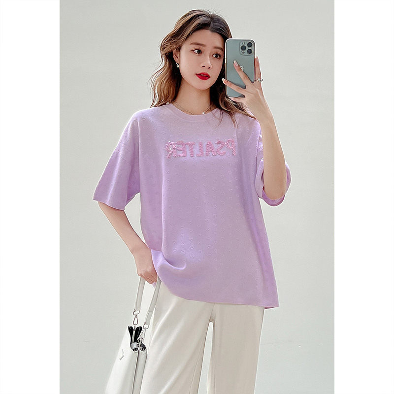 Poem Keyan women's clothing 2022 summer new loose embroidered thin sweater short-sleeved knitted sweater