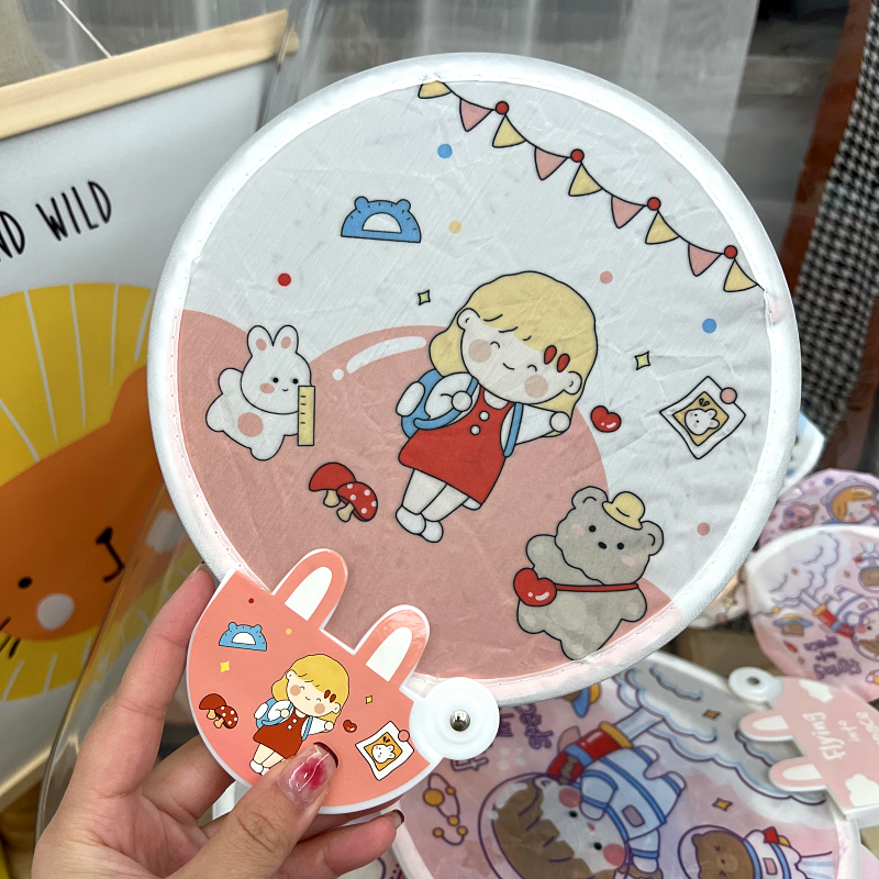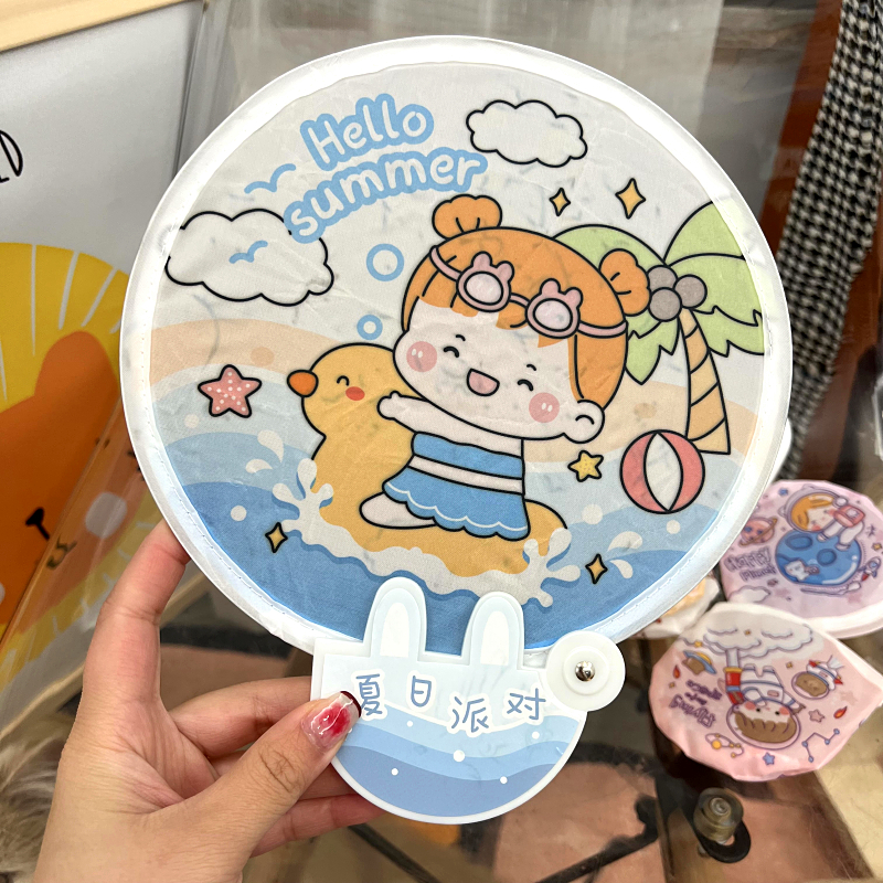 Fan Day Style Folds Fold Small Group Fan Student Mini Portable cute girl Heart cartoon cloth face folding fan