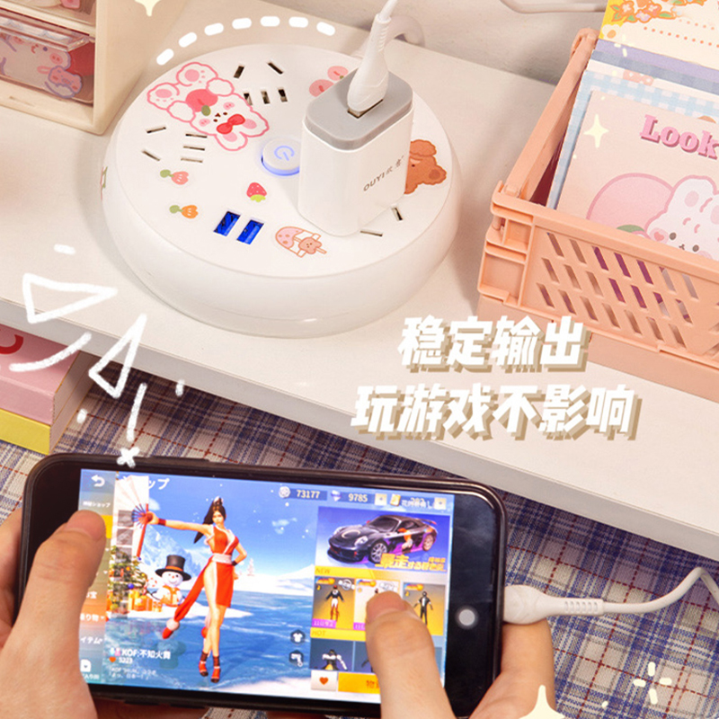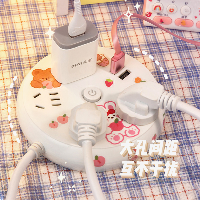 Socket multi-functional extension line with USB interface plug cute student dorm wiring board round plug plug