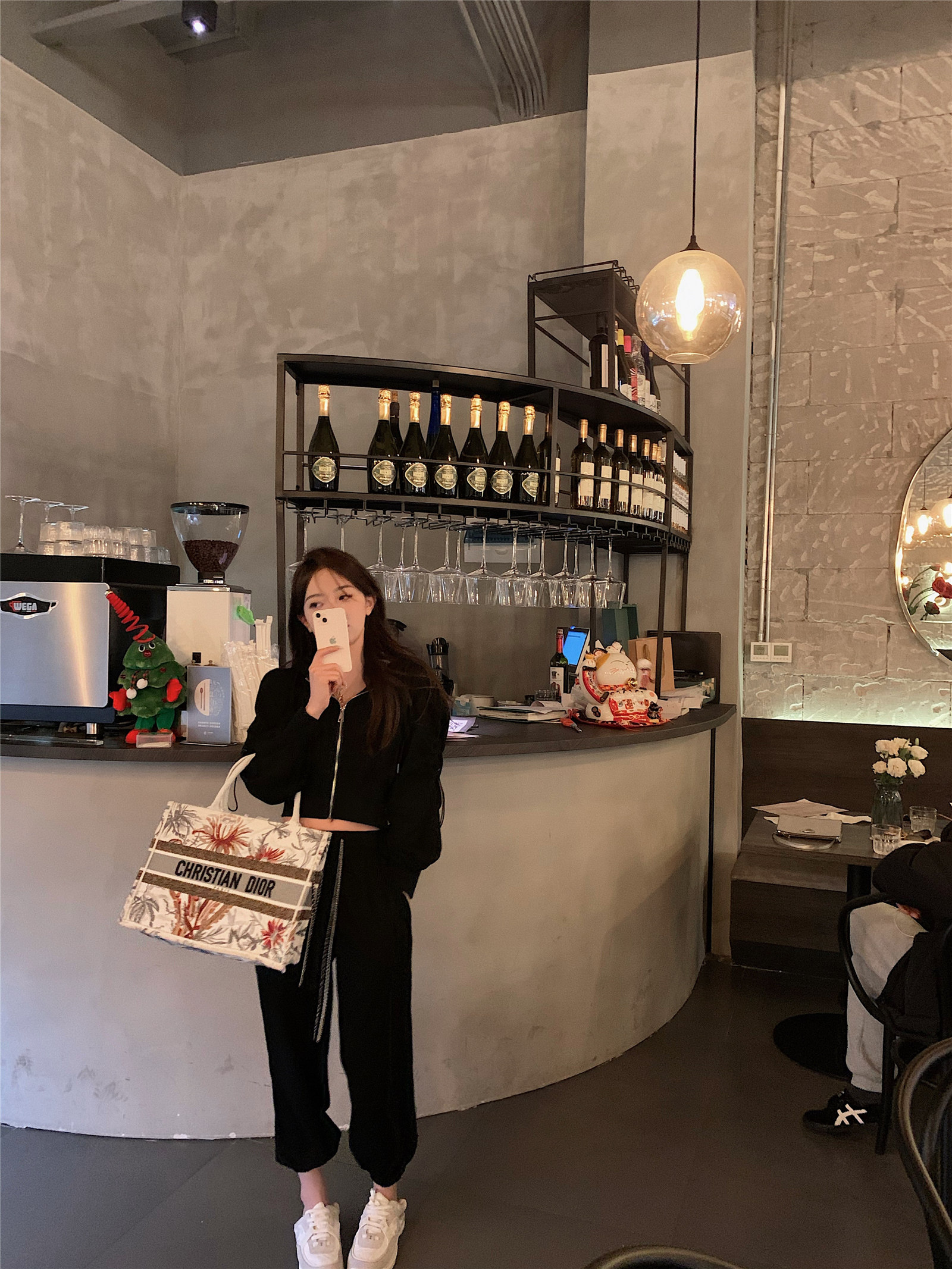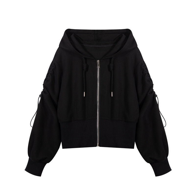 Design sense Short version of the clothing jacket woman Early spring new sweet and cool trendy pull chain Lianhood short blouchred blouses