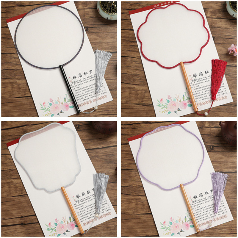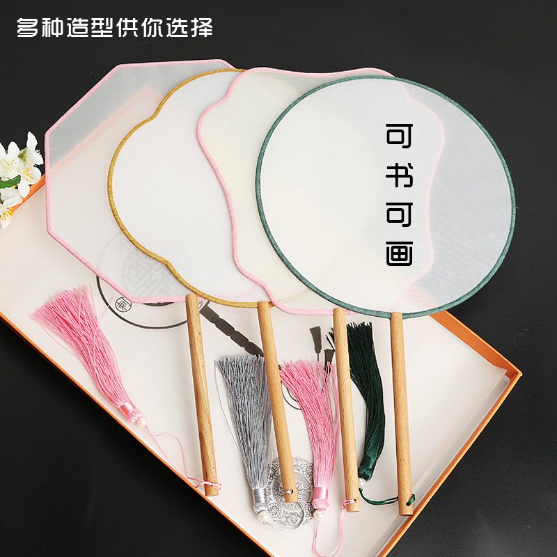 Group Fan Genuine Silk Blank Group Fan Silk Cloth Round White Face Transparent Hand Painting Cooked Silk Work Pen Country Painting Diy Hand Fan