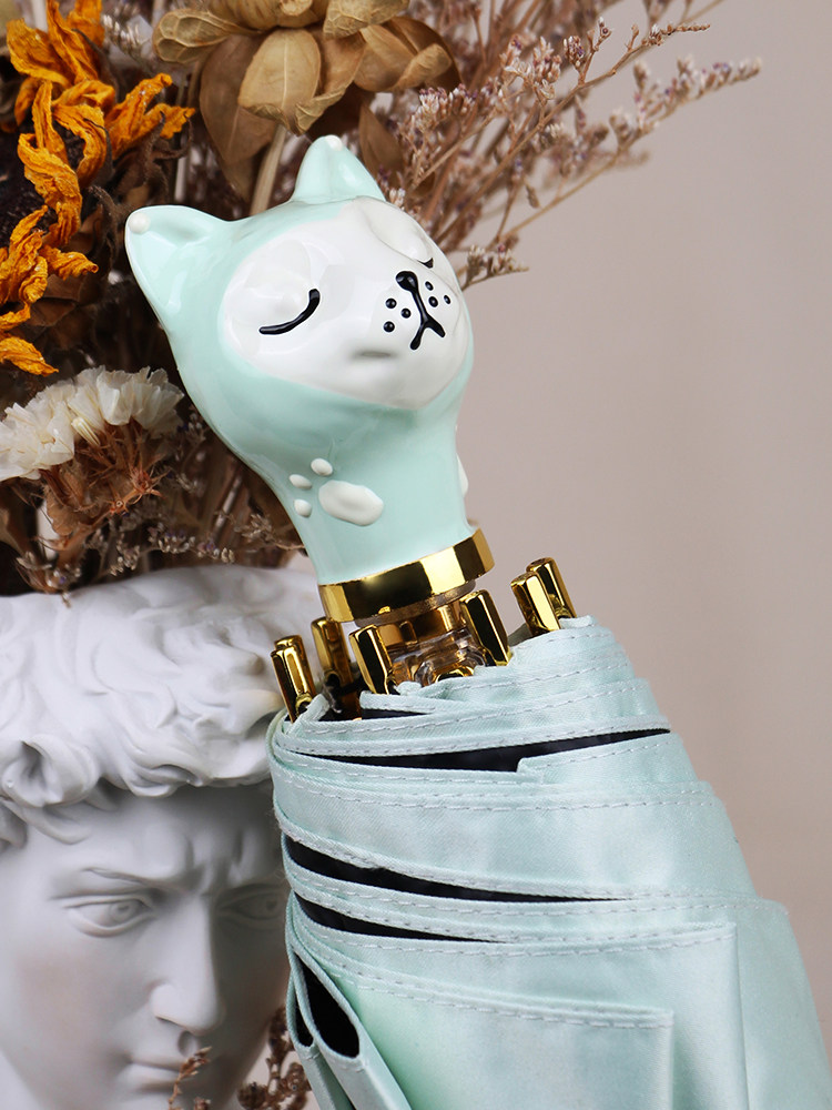 DanMunier Cat Umbrella High-value Umbrella for Girls Small and Foldable Personalized Sunny and Rainy Dual-purpose Five-fold Umbrella
