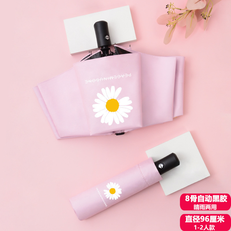 Fully automatic three-fold black plastic parasol one-key opening and closing portable small sunscreen umbrella student small fresh umbrella